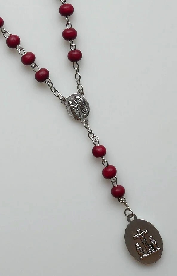 This chaplet recalls the Sorrows of The Virgin Mother of God endured in compassion for the suffering and death of her divine Son. The Seven Sorrows Chaplet consists of seven decades (each decade of 7 beads each) in commemoration of the Virgin, namely, the Annunciation, the Visitation, the Nativity of Jesus, the Adoration of the Magi, the Finding in the Temple, the Resurrection of Jesus and finally, either or both the Assumption. Our Lady said that praying this rosary with a penitent heart would result in forgiveness for our sins from the Lord as well as freedom from guilt and remorse. Furthermore, the longer this rosary is prayed, the more we’ll become aware of our shortcomings; why we sin and what we should do to change those habits. If you’re stuck on a certain problem and need a mother’s guidance, this rosary is also highly recommended for such a time. THIS ROSARY IS NOT INTENDED TO USE AS A NECKLACE ROSARY THIS ROSARY WILL LAST FOR A VERY LONG TIME SIZE/LENGTH: 19" long including the medal. MATERIAL: Zinc alloy silver tone medallions and round black wood beads 1/4" MEDAL: Immaculate Heart Blessed Virgin medal measures 7/8" x 5/8" MEDALLIONS: Zinc alloy silver tone alloy showing the seven sorrows How to pray the Rosary of the Seven Sorrows 1.- The First Sword of Sorrow: The Prophesy of Simeon (Luke 2: 22-35) Pray 1 Our Father and 7 Hail Marys 2.- The Second Sword of Sorrow: The Scape Into Egypt (Matt. 2: 13-15) Pray 1 Our Father and 7 Hail Marys 3.- The Third Sword of Sorrow: The Loss of Jesus in the Temple (Luke 2: 41-52) Pray 1 Our Father and 7 Hail Marys 4.- The Fourth Sword of Sorrow: Mary Meets Jesus on the Way to Calvary (Luke 23: 27-31) Pray 1 Our Father and 7 Hail Marys 5.- The Fifth Sword of Sorrow: Mary Stands at the Foot of the Cross (Jn. 19: 25-27) Pray 1 Our Father and 7 Hail Marys 6.- The Sixth Sword of Sorrow: Mary Receives the Dead Body of Jesus in Her Arms (Jn. 19: 38-40) Pray 1 Our Father and 7 Hail Marys 7.- The Seventh Sword of Sorrow: The Body of Jesus is Placed in the Tomb (Jn. 19: 41-42) Pray 1 Our Father and 7 Hail Marys To prevent from getting damaged it's a good idea to preserve your rosary to put it in case or any container when not being used. Come Visit Us at Our New Store! Please feel free to email me with questions that you may have. Also please check my other listings. I am always available to answer your questions promptly