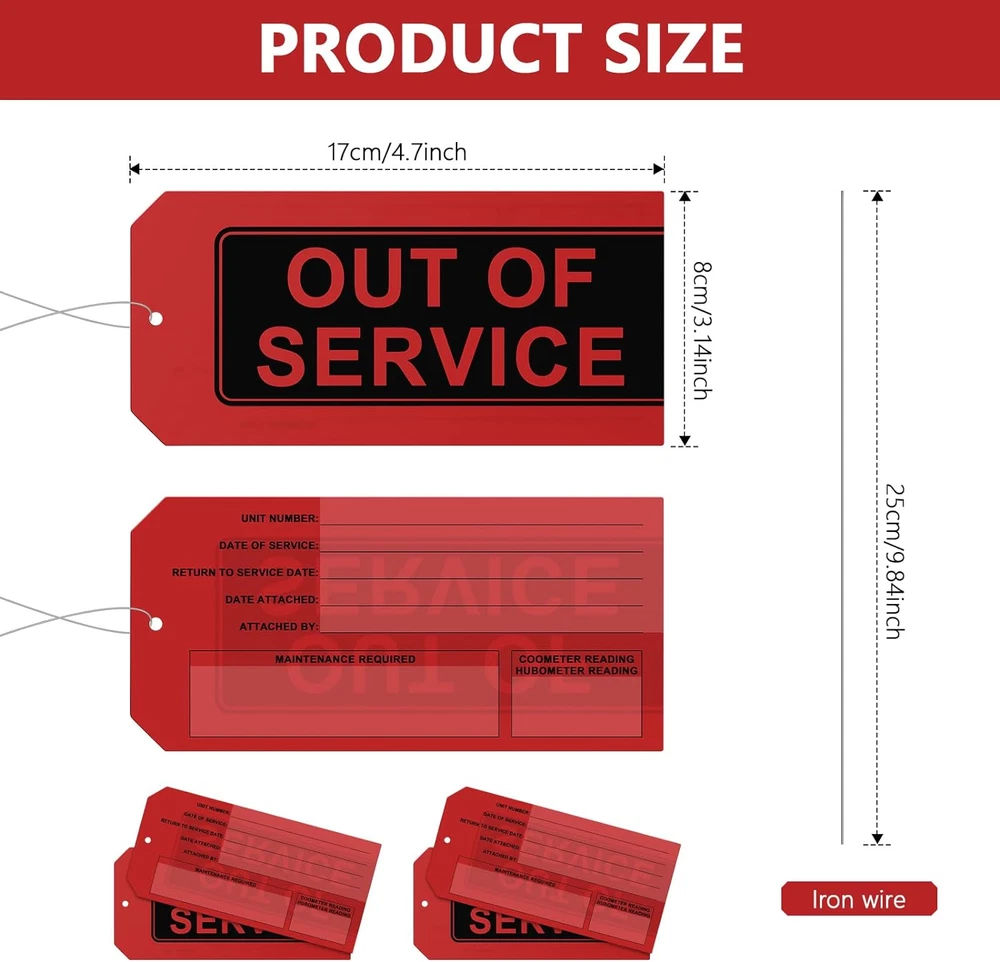 Out of Service Tags,100-Pk Red Repair Tags with Wires Attached,Tear & Water Resi