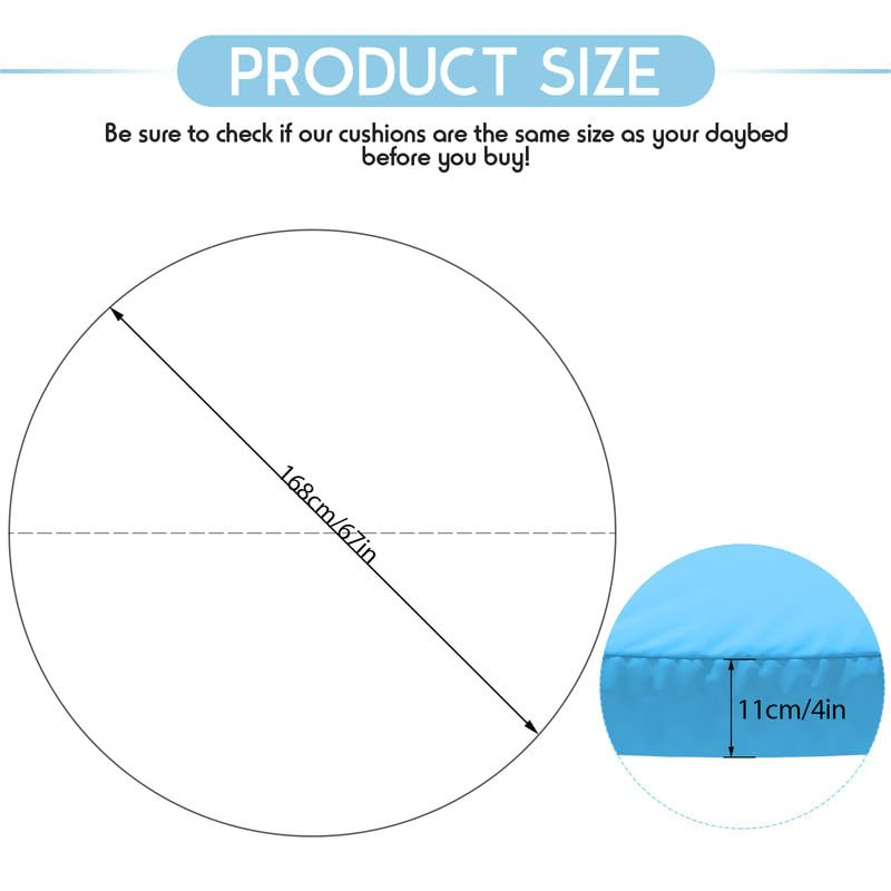 Menu 1. We require immediate payment. 2. We currently accept payment via eBay managed payments only. 3. Once payment is cleared, we will dispatch your shipment within 1-3 business days. Please refer to the "Shipping" tab for more information regarding shipping speed to your destination. Outdoor Daybed Cushion Cover, 66" Replacement Round Bed Cushion Cover,Outdoor Waterproof and Fade-Resistant Sun Bed Outdoor Cushion Cover - Patio Round Daybed Cushion Cover, Cover ONLY Product description 【Notice】: 1. Please check your outdoor daybed size and our cushion cover replacement set size before ordering to ensure they fit your outdoor daybed. (Exact measurements to within ±1/2 inch are suitable.) 2. This item includes covers only, not cushions. 3. If you encounter any product problems, damage, and missing parts please get in touch with us for replacement. 【Outdoor Daybed Cushion Cover】:66" replacement daybed cover suitable for outdoor daybed cushion. The size is 66" diameter × 4" height, (COVERS ONLY, CUSHIONS NOT INCLUDED) 【Fade Resistant and Soft】:Outdoor sun bed cushion covers replacement fabric is made of high-quality polyester, and the fabric is soft and comfortable. At the same time, to increase the sun exposure time of the outdoor cushion, We use a solution-dyed weaving process. It has the advantages of high color fastness and durability. 【Waterproof and Easy to Clean】:Sun bed cushion covers made of waterproof material are easy to maintain and clean, when your cushions get dirty, you need to wipe them with a clean rag. (It is recommended that you cover it when not in use or when it rains, this can extend the life of the outdoor daybed cover) 【Unparalleled details】:This outdoor round bed cushion cover adopts a semi-closed hidden zipper design, giving it a stylish and neat appearance. Surrounding convex strip design, not easy to deform. Which can create a warm and comfortable resting atmosp for you and prevent your patio cushions from getting stained. PLEASE MESSAGE US IF YOU HAVE ANY OTHER QUESTIONS, AND MANY THANKS FOR READING ALL OF THIS. Copyright ©#. All Rights Reserved.