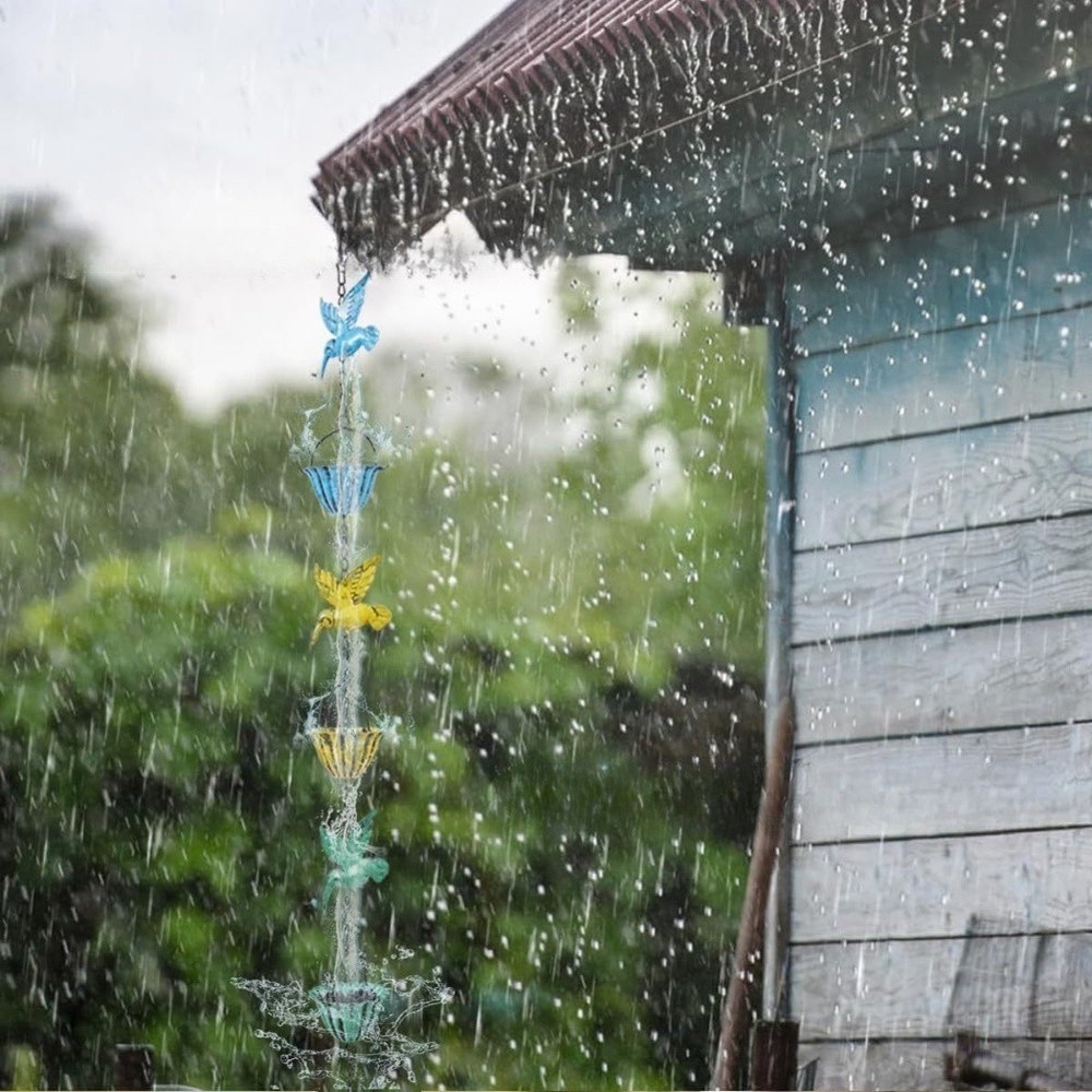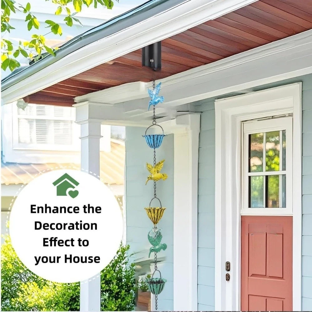 Beschreibung Features: *Graceful Rainwater Capture: This 7.8ft rain chain features wide, flared mouths and deep cups that channel rainwater effectively from your gutters to the ground, minimizing splashes and erosion while creating a soothing sound as water flows through. *Artistic Design Element: More than just a functional piece, this rain chain showcases 6 beautifully designed flower-shaped cups and 6 vintage bronze hummingbirds, turning your rainfall into an eye-catching vertical water feature that enhances your outdoor decor. * For Durable Construction: Made from premium steel with a protective anti-rust bronze coating, this rain chain is built to withstand various weather conditions. A weighted bird at the bottom ensures stability during storms, avoidance unwanted movement and splash-back. *Adjustable Installation: Installation is a breeze with the included S hook that allows for quick hanging on your gutter adapter (adapter not included). The chain can be easily adjusted by adding or removing links or cups, making it suitable for most single-story homes. *Perfect present Choice: Combining functionality and beauty, this decorative rain chain is a for IDEAL present for gardening enthusiasts, new for HOMEOWNERS , or anyone who appreciates the serene charm of rain. It’s perfect for occasions like Christmas, birthdays, or housewarming parties. Specifications: *Product Name:Bird Cup Chain *Material:metal *Size:94.48inch,240cm *Color:blue,yellow *Number of Pieces: 1pcs Cup Chain Package Content: 1pcs Cup Rain Chain Note: 1. The real color of the item may be slightly different from the pictures shown on website caused by many factors such as brightness of your monitor and light brightness. 2. Please allow slight manual measurement deviation for the data. POLICES Shipping Payment WARRANTY We only ship to confirmed ebay Order addresses. Please comfirm that your Order address is in line with your shipping address. Please kindly note that the c ombined shipping is not provided because the shipping fee is calculated by weight. Also, the each additional item means exactly the the same color and size. It takes about 7 -15 working days to US; about 10-30 working days to other countries. Transit time may be a little delayed because of the bad weather and customs inspection . If you do not receive your item within 30 working days since payment finished, please contact us immediately for further assistance. Payment must be completed within 5 days. If you have any problems about payment, please contact us via ebay message. We strive for 100% customer satisfaction! Positive Feedback is very important to us. If you have any questions, p lease feel free to contact us via "Ask seller a question" . We will reply your email within 24 working hours.