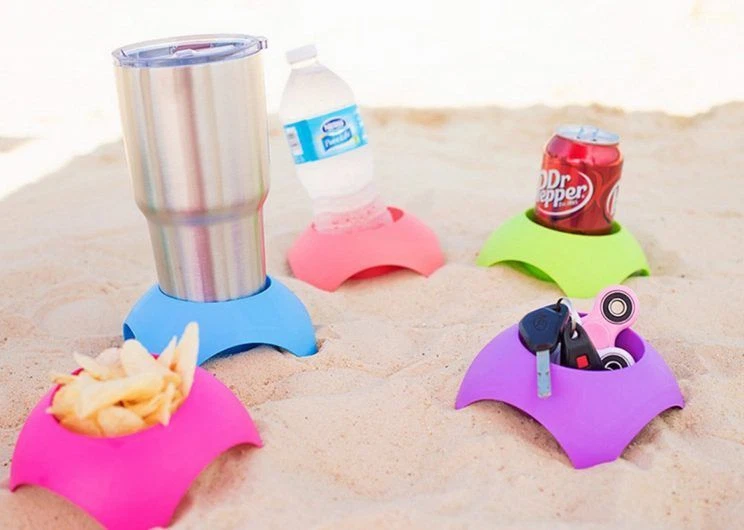 Outdoor Beach Vacation Turtleback Sand Coaster Drink Cup Holder, 4 Pack