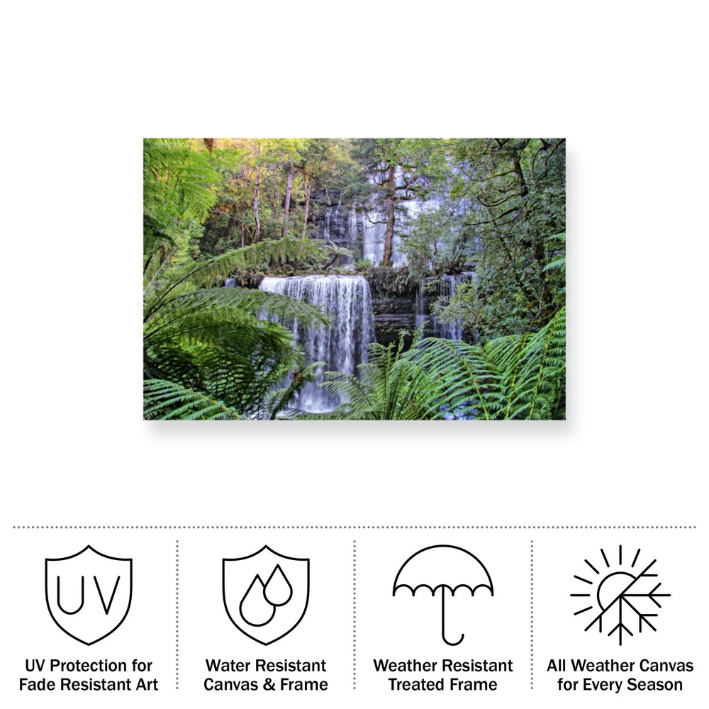 OUTDOOR WALL DECOR - This outdoor wall art is made of all-weather canvas and treated natural wood that can be placed outdoors with direct exposure to the elements without fear of fading. WATER RESISTANT CANVAS - Specifically designed to be placed out in the elements, our weather resistant canvas will provide long-lasting use in any outdoor location. DIGITALLY REPRODUCED - The sharp, colorful photographs on the outdoor art have been digitally reproduced with vibrant colors, printed on artist canvas, and stretched on all-season stretcher bars. GALLERY WRAPPED - This canvas outdoor wall art is gallery wrapped, meaning the print is wrapped tightly around the frame and secured at the back for a clean finish and an art-gallery-style look. PRODUCT DETAILS - Materials: All-Weather Canvas and Weather Treated Natural Wood. Mounted Hanger Included.