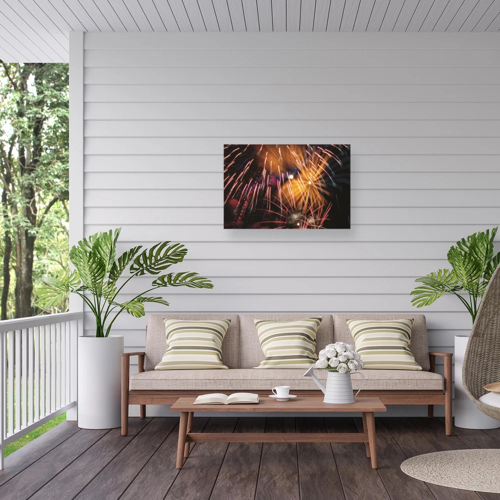 OUTDOOR WALL DECOR - This outdoor wall art is made of all-weather canvas and treated natural wood that can be placed outdoors with direct exposure to the elements without fear of fading. WATER RESISTANT CANVAS - Specifically designed to be placed out in the elements, our weather resistant canvas will provide long-lasting use in any outdoor location. DIGITALLY REPRODUCED - The sharp, colorful photographs on the outdoor art have been digitally reproduced with vibrant colors, printed on artist canvas, and stretched on all-season stretcher bars. GALLERY WRAPPED - This canvas outdoor wall art is gallery wrapped, meaning the print is wrapped tightly around the frame and secured at the back for a clean finish and an art-gallery-style look. PRODUCT DETAILS - Materials: All-Weather Canvas and Weather Treated Natural Wood. Mounted Hanger Included.
