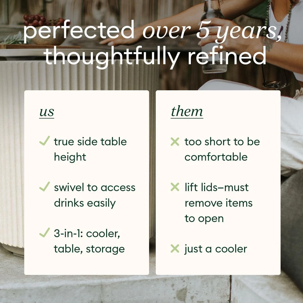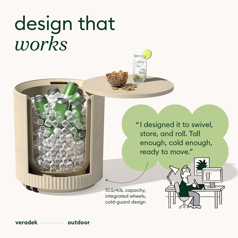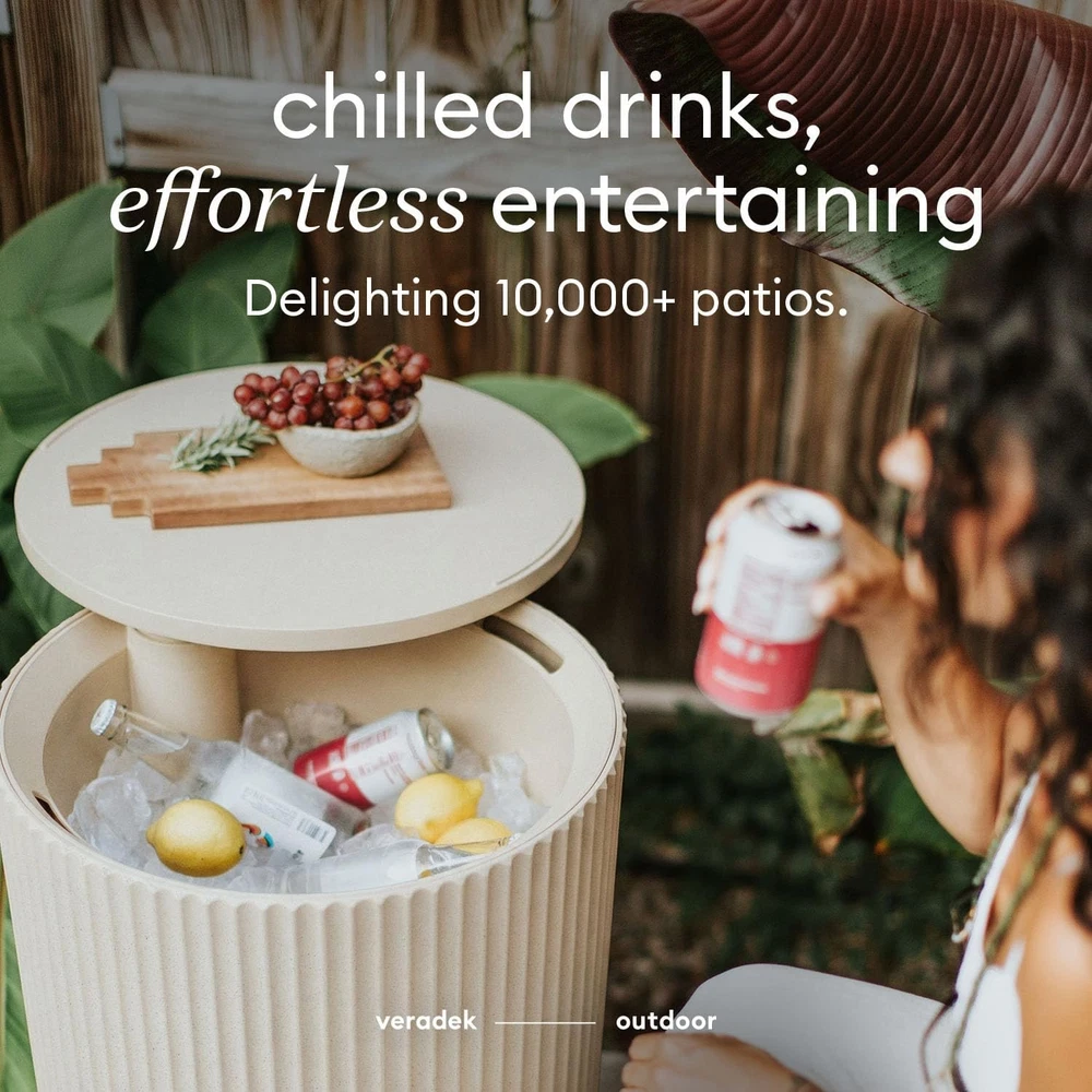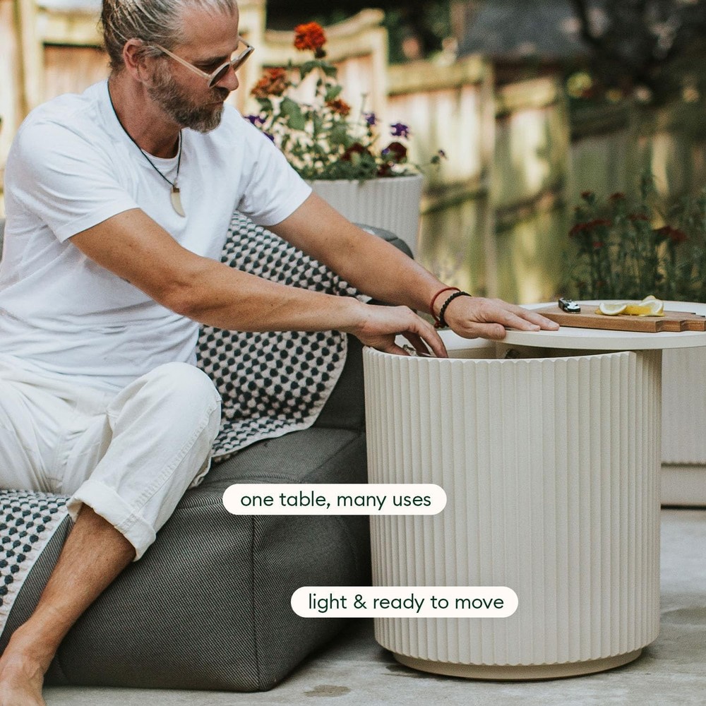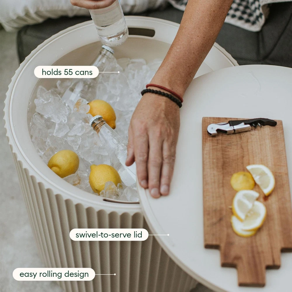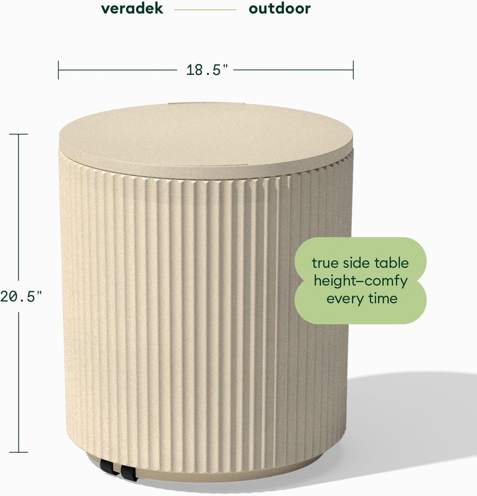 About this item KEEP COOL - Keeps 48 12 oz. cans cool for up to 12 hours with an ice capacity of 40L of 10.5 Gallons. Cool gifts for dad or mom! MODERN DESIGN - Clean, modern design. From the balcony, to the patio, to the pool, the Cooler Table fits any house and any space. Comes in various colors including black, white, sandstone and gray. ALL WEATHER RESISTANT - The most durable backyard furniture, deck furniture, outside decor, outdoor tables you will ever own. Weather tested in -20 degrees to +120 degrees. Fade and crack resistant. MADE FROM REAL STONE - The only outdoor bar set, patio accessories or outdoor end table made from a PATENTED stone-plastic composite. The look/feel of stone with the performance of plastic. MADE IN CANADA - In Canada, we know extreme temperatures. Designed and made in Canada, you can rest assured that your Cooler Side Table will be of the highest quality and last all year round. VERSATILE - Can be used as an outdoor table, outdoor storage bench, small outdoor table, outdoor side tables for patio, small patio table, outdoor bar table, bar decor, cooler, patio side table, etc. Product Dimensions: 18.5"D x 18.5"W x 21"H Item Weight: 31 Pounds Maximum Weight Recommendation: 100 Pounds Frame Material: Plastic