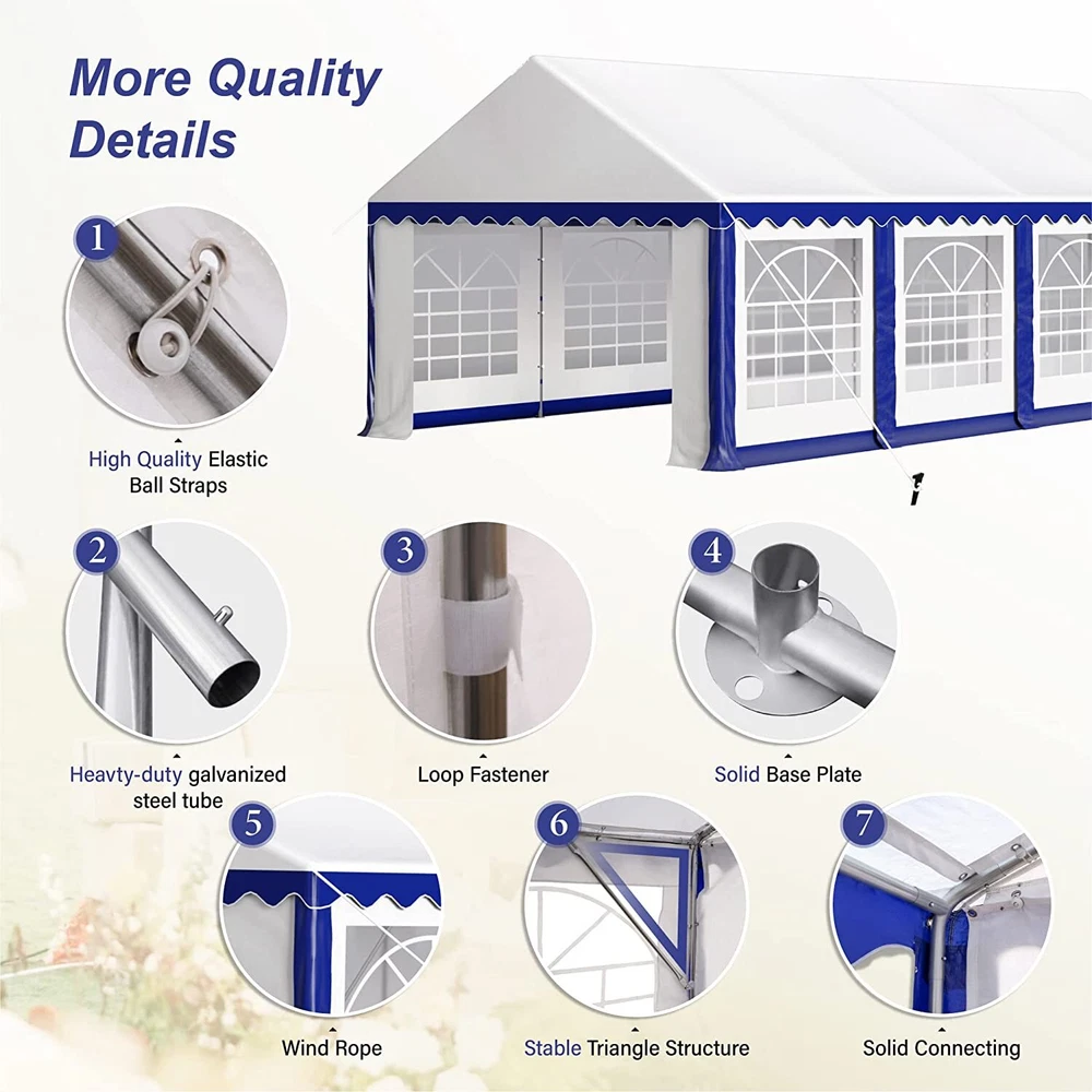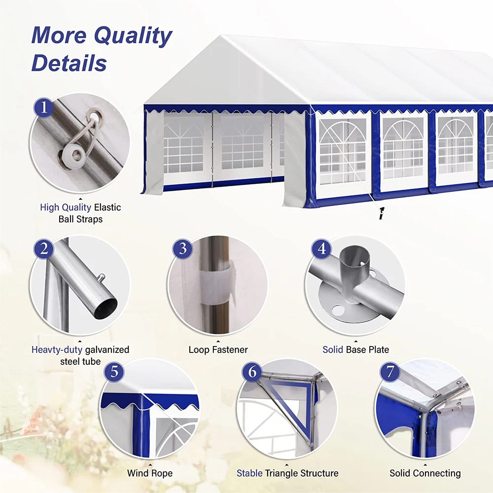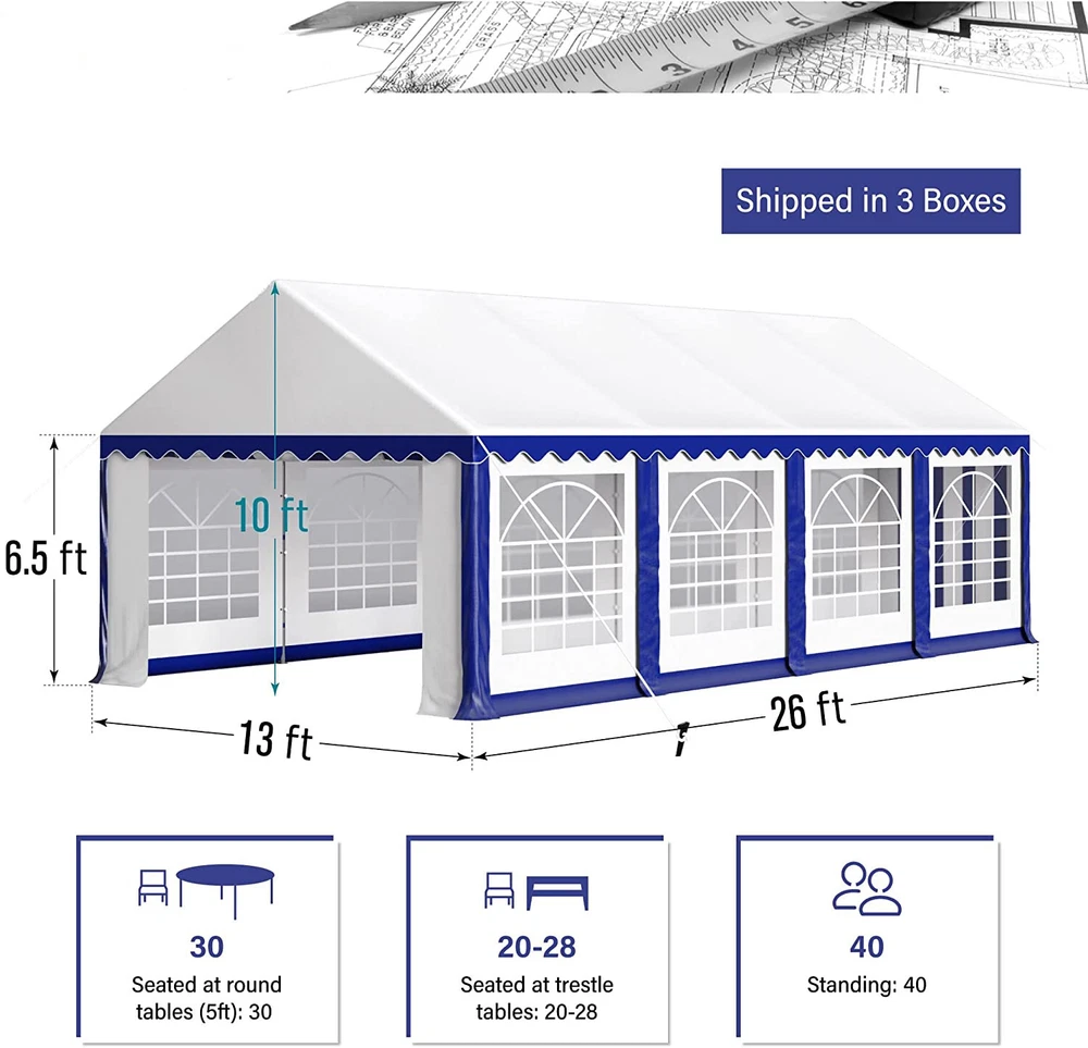Store Home View Our Listings Bookmark Us Contact Us MENU Store Categories home table office chair Office Table Indoor Chair Storage Cabinet Fireplace Cookware Other Store Support Store Home View Our Listings Bookmark Us Contact Us Store Categories home table office chair Office Table Indoor Chair Storage Cabinet Fireplace Cookware Other Fast, Secure Shipping 30 Day Returns *on select items Satisfaction Guaranteed Description Specifications: Color : White+blue Size : 13'x26';16'x32';20'x40' Cover Material : 180g PE Pole material: Powder-coated, diameter 38mm, thickness 0.8mm Connector material : Powder-coated, diameter 42mm, thickness 1.2mm Package Includes: 1 x Tent 1 x Carry Bag Features: ✨【Service & Guarantee】 Each piece of our products passes strict multi inspection process which gives customers multi guarantee. In case you receive defect items caused by delivery, please feel free to contact us, we guaranteed to ensure your 100% satisfaction ✨【Sturdy and Durable Tent with BETTER Details】 ①we use 1.2mm thick galvanized steel tubes instead of 1.0mm tubes, stable enough without break; ②we use 180gms higher density PE fabric instead of 160gsm, better wind and tear resistance; ③we use eyelets with claws as our exclusive design, not easy to slide; ④we use 6mm solid wind rope instead of 3.5mm hollow wind rope, more safety with higher stability ✨ 【Easy to Install & Disassemble & Reuse】 The instructions included are entirely adequate to enable you to assemble the tent, and all the parts are clearly marked with the respective part number. 2-3 people is a good sized crew, can be put into use quickly. Extra carry bags are included for easy storage(the same material as the tarp) ✨ 【Attractive & Practical Outdoor Party Tent】 If you're hosting an event or party and are struggling with high cost of a hotel, or traditional space cannot meet your theme, you can choose our tents. About Us About Us Payment Shipping Contact Us Returns About Us Welcome to our eBay store. We sale products about Home Garden,Home Organization,and Office Products. We are committed to your good buying experience from us. If you meet some problems or further questions,even some dissatisfaction with us,please give us a chance to solve the problem and offer you the best service,before leaving us a negative feedback. Meanwhile if you are satisfied with our products and service,please leave positive feedback with Four 5-Stars. Payment Payment 1. We accept Payoneer, PayPal ,Google Pay,Visa,Discover payment,etc 2. We appreciate prompt payment and look forward to your business in the future. 3. Unpaid item will be filed without receiving payment in 7 days from listing ended. 4. If for some reason there is any issue with the purchase,please contact us prior to leaving feedback,and we will be glad to work with you to have it resolved. Shipping Shipping 1. We take great care packaging every item to ensure safe quality shipping. 2. We ship UPS/USPS/FedEx depending on your location and the shipping method you have chosen. 3. Most shipments are sent out within 1-3 business day after payment is confirmed or cleared,unless stated on otherwise in the listing. 4. Packages are not shipped on Saturday and Sunday. Transit time varies and depends on the carrier,we cannot be held responsible for delays caused by carriers. 5. Please make sure to provide the correct shipping address when placing your order,orders will be shipped out to the shipping address provided by eBay. 6. Shipping time by eBay is estimated and not guaranteed and is subject to change especially during peak periods. 7. Orders shipping to Hawaii,Puerto Rico,Guam or Alaska may not select the Free shipping option for this item,if free shipping is selected for one of these destinations we reserve the right to cancel your order. Contact Us Contact Us 1. If you have any questions or concerns about the product or the auction,please contact our customer service department via email or send us message on eBay my messages. We will give you a response in 24 hours. 2. All emails will be responded to within 12-24hours. Returns Returns 1. We offer a 30 day return policy on all items.(Unless stated otherwise in the listing). 2. All returns must be in original condition and must include the original packaging and content intact. 3. Returns should be packed in proper packaging to avoid damage to the item or it original packaging. 4. For any return request please contact our Customer Support by eBay Messages and you will be assigned an RMA number and instructions on how to proceed with your return. 5. Please allow 3-5 business days after we receive your package to process your return. 6. Any returns that violate this return policy will not be accepted and will be sent back at customers’ expense. More Items! View more great items