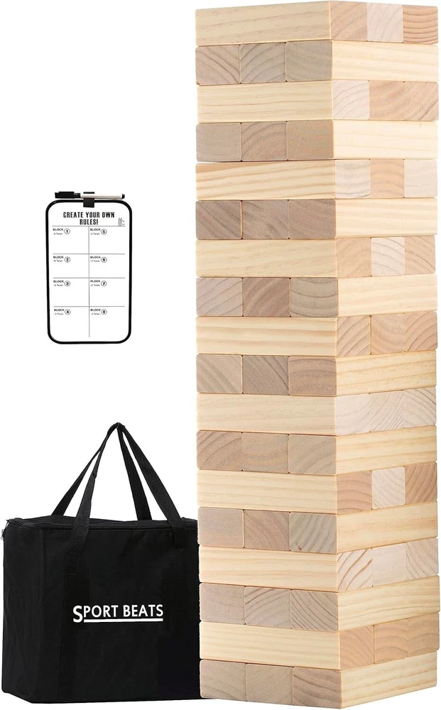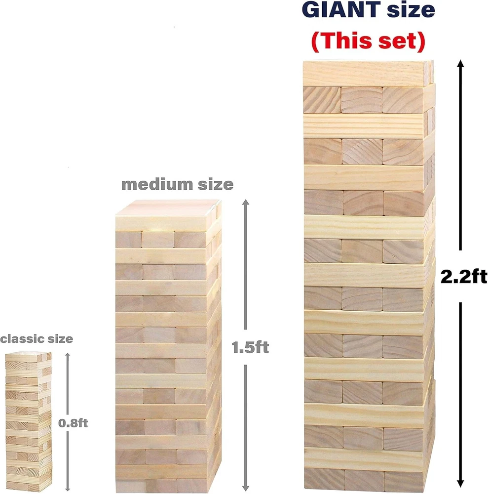 Outdoor Giant Tower Game - 54 Stacking Blocks with Scoreboard & Carry Bag