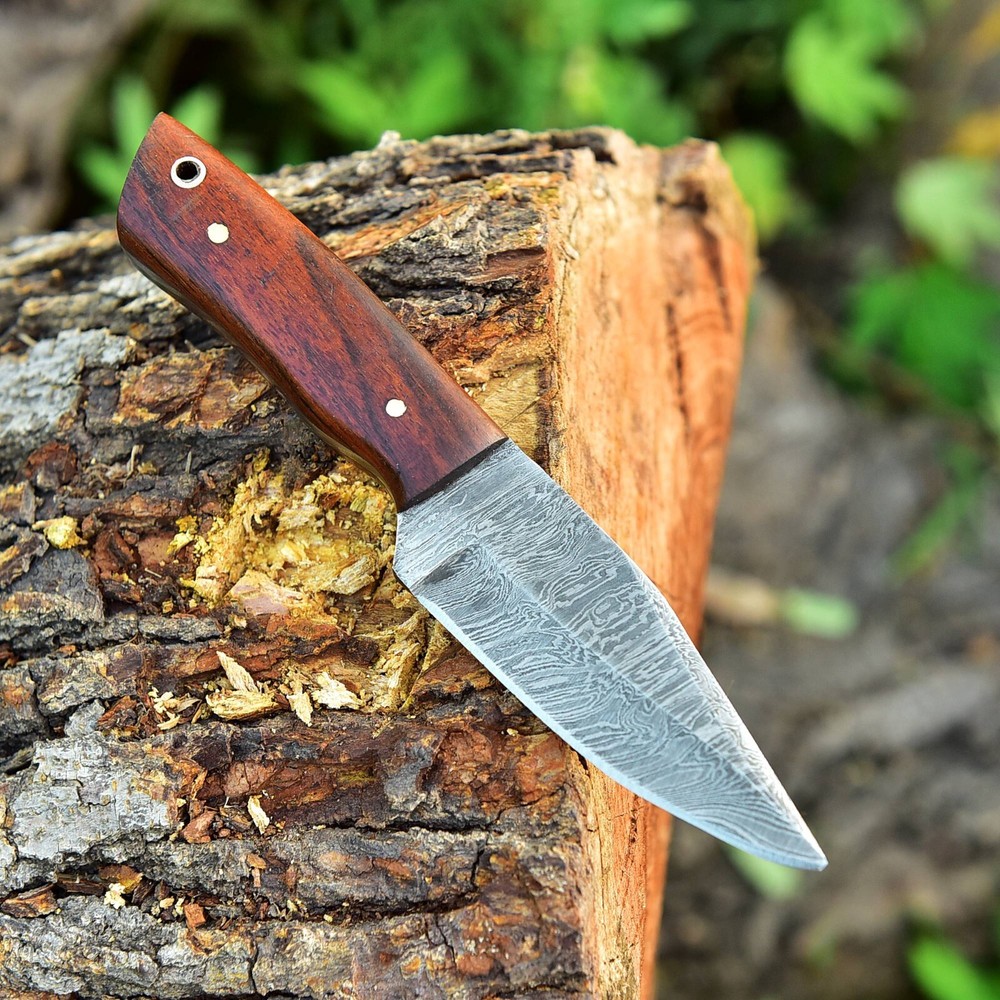 CUSTOM HANDMADE HAND FORGED DAMASCUS STEEL KNIFE WOOD Handle This superb design knife is hand forged. Blade of this knife has a nice file work and is made of 512 layers of 4340 stainless steel and 1075 high carbon steel and hardness 55-58 HRC . This robust knife is lab tested under intense conditions, the balance and shape of this knife ensures perfect grip. Overall Close Length: 6" Inches Blade Length: 2.75" Inches Damascus Design: Twist Pattern Layers: 512 Sheath: Leather Hand Forged