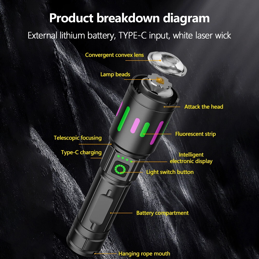 Outdoor Light White Laser Flashlight Home Waterproof Super High Power Night Time