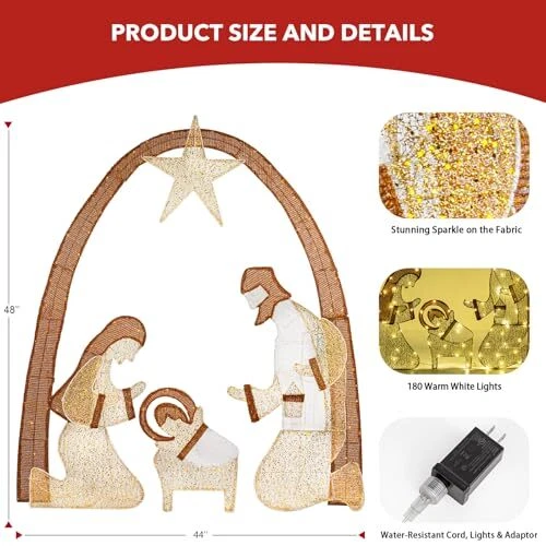 Menu 1. We require immediate payment. 2. We currently accept payment via eBay managed payments only. 3. Once payment is cleared, we will dispatch your shipment within 1-3 business days. Please refer to the "Shipping" tab for more information regarding shipping speed to your destination. Outdoor Lighted Nativity Scene Set for Christmas Decoration, 48Inch Large Christmas Holy Family Set for Yard Lawn Garden Outside Decor and Home Holiday Party Product description ⭐【Elegant Holy Christmas】Embrace the holiday atmosp with our unique Christmas yard decoration, to bring the biblical narrative to life in your yard. The classic look and the angel above the Star, symbolizing the decoration, protecting the family, and bringing to the family. Everyone will be surprised to join your Christmas party and leave behind beautiful memories. ⭐【 Lighted Nativity Scene Set】Please have this nativity scene outdoor decoration assembled in area to avoid glitter cleaning during installation. This lighted nativity Christmas decoration is made out of glitter fabric around a wired frame which can sparkle in the sun. ⭐【 Durable & Convenient】This Nativity Christmas Decorations outdoor yard made of advanced materials which is weather-proof, lightweight, durability. The Christmas Outdoor decor comes with a gift box so that you can easily store until the next season. ⭐【Christmas Outdoor Décor】This Nativity Scene Christmas lighting will be the perfect decoration for indoor and outdoor, zipper connections, waterproofing, and adapter power cords, making it more stable and long-lasting. The exterior decoration of this christmas can bring moments to your family/neighbors/people. ⭐【Perfect Christmas Yard Decorations & Gift】The Lighted Nativity is great for any holiday event or party. Both kids and adults will love this fun presents christmas decor. Great for indoor, outside, front yard, patio,lawn, garden, stage prop, party, restaurants, cafes, home, party, Xmas, Holiday, Festivals, Vacation, Mardi Gras, New Years. PLEASE MESSAGE US IF YOU HAVE ANY OTHER QUESTIONS, AND MANY THANKS FOR READING ALL OF THIS. Copyright ©#. All Rights Reserved.