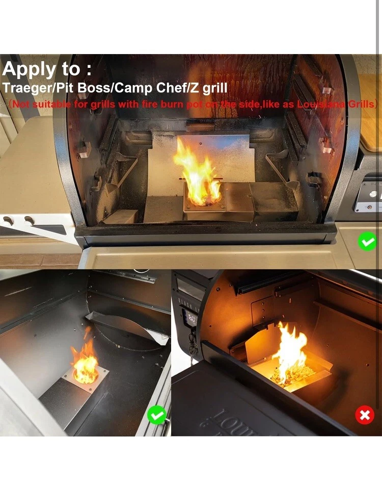 【Apply to】Pellet grill Pizza Oven attachment compatible with any pellet smoker that has a 19-1/2" width cooking surface, Traeger/Pit Boss/Camp Chef/Z grill (Not compatible grills which fire burn pot on the side,like as Louisiana Grills) 【Pizza oven】Pizza oven attachment made from premium stainless steel,metal lid built-in thermometer to help you monitor the temperature to achieve the best results . Enclosing pizza oven chamber design to concentrate the heat from the pellet burner . It is can get up about 700°F (371°C) in just 10 minutes! Once at this temperature, the pellet pizza oven can cook a 14-inch Neapolitan-style pizza in around 5 minutes,crispy and had the authentic look and taste 【Pizza Stone】The pizza stone made of cordierite ceramics,it can drain the external steam from the dough and promote perfect crust, making the inside moist and fluffy makes the pizza bake very evenly, suitable for family-together 【Feature】Versatile enough to control and cook at lower temps for items like bread, chicken, and casseroles .Place a Cast Iron pan on the top to sauté sauces, roast potatoes and more. Even cooking surface, convection air creates a crisp crust and melty topping at the same time 【Easy to install 】The first step please read the manual assemb the pizza oven(in the package box ) . Remove cooking grates, second shelf, and fire baffle (if has it ).place bracket,it slides easily into the oven but one has to be careful that it aligns with the guides.Pace the pizza stone,line up the holes of the cover with the screws of the base.Installed complete