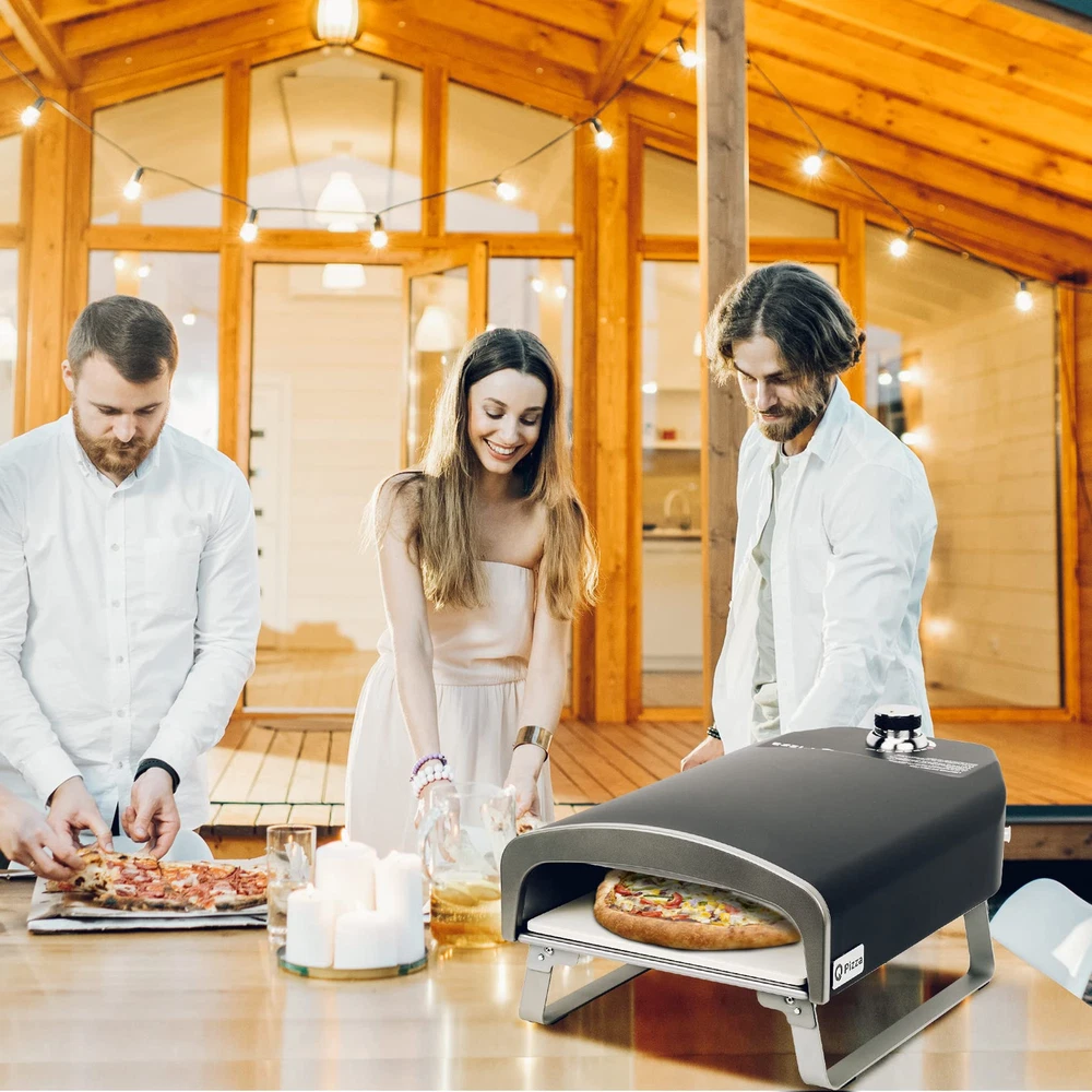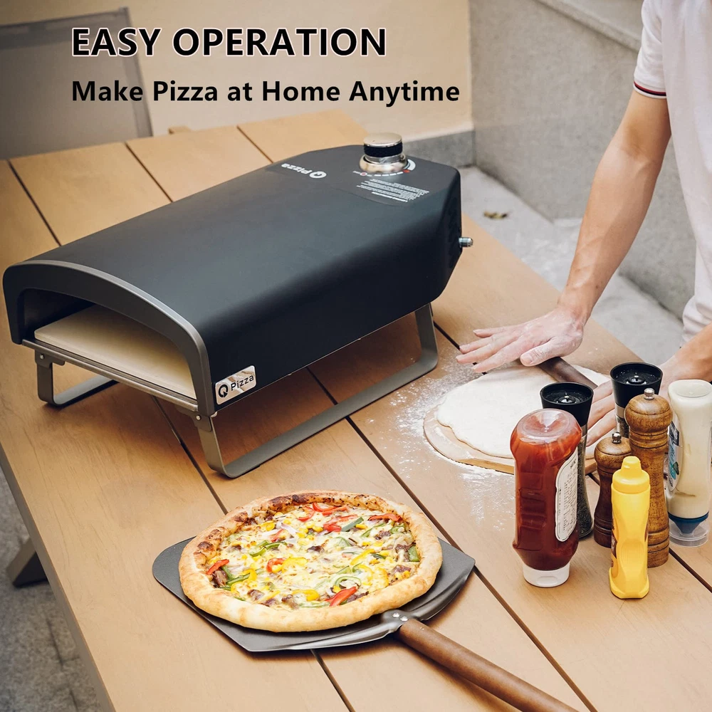【Portable Outdoor Gas Pizza Oven】Newest series gas pizza baking oven is specially designed outdoor application, either portable or transportable, cooking with portable gas pizza oven means serving up fantastic dishes in your garden backyard, at the beach or any outdoor space. 【10-15 Min Rapid Preheating & 1 Minutes Baking】- Connect a 20lb propane tank and it takes about 10-15 minutes to preheat, and when the temperature reaches 500 degrees Celsius, the pizza can be baked in one minute. Which means that you can prepare multiple pizzas in advance and bake them all in a few minutes. Spend less time to baking and more time to enjoy the delicious. 【Perfect for Outdoor Garden Backyard】 Allows you to try out all your favorite recipes and bake bread, chicken tenders, shrimp, cookies, pies and any other pastry to perfection. 【Easy to Install, Operate & Clean】- Assembles and installs in minutes with no tools. The outdoor pizza oven is easy to operate for any professinal and amateur pizza maker, even the new learners. Fast, easy way to bake fresh/frozen pizza! Just apply some stainless steel cleaning solution to the outside of your unit by a small towel or rag. 【Great Gift for BBQ Pizza Lover & Camper】It's a best gift for any pizza lover. Allows you to try out all your favorite recipes and bake bread, chicken tenders, shrimp, cookies, pies and any other pastry to perfection.