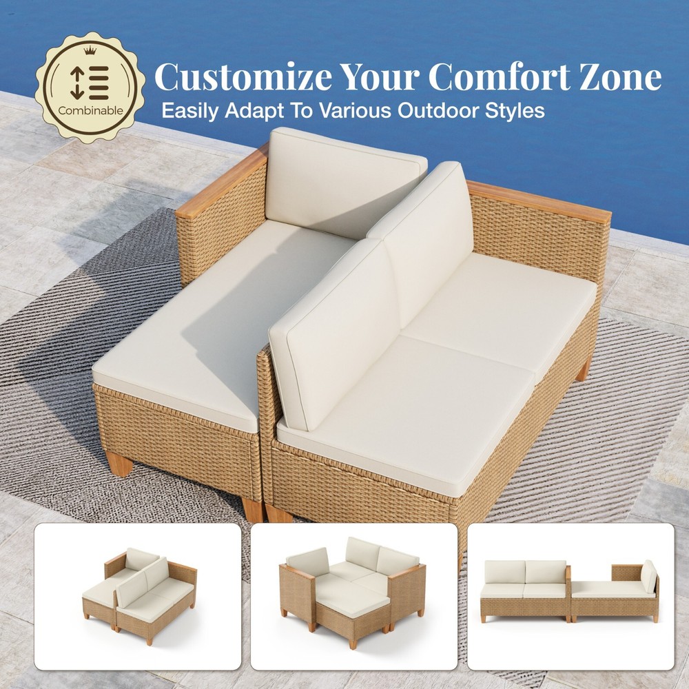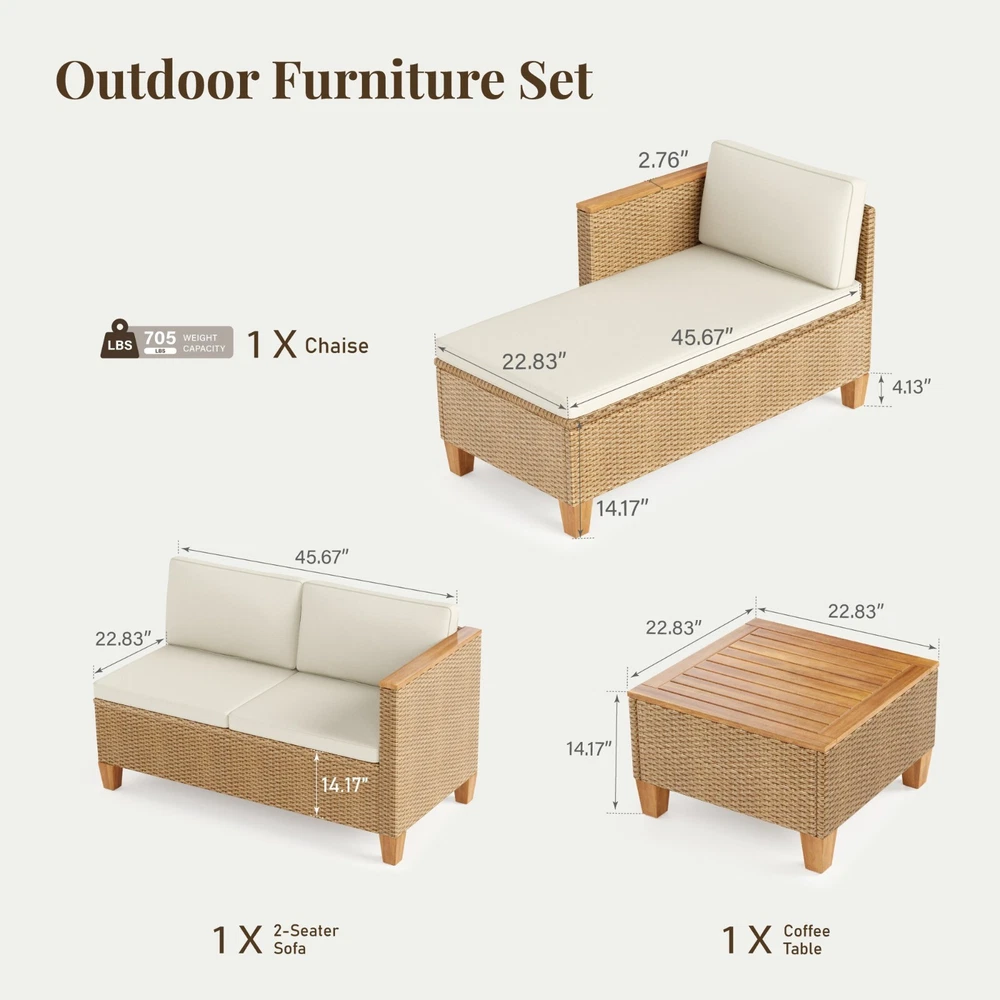 Chair Back Material: Rattan Style: Patio Furniture Brand: PHI VILLA UPC: Does not apply For 2: Rattan Furniture Manufacturer Warranty: 1 Year gtin13: Does not apply Assembly Required: No Model: Outdoor Furniture For 1: Outdoor Furniture Set Features: With Armrest, With Backrest, with cushions, with Ottoman Color: Beige Seating Capacity: Up to 4 Tabletop Color: Brown Chair Width: 22.83 in For 4: Patio Furniture Set For: Outdoor Conversation Set Material: Metal, Rattan Tabletop Material: Wood MPN: Does Not Apply Table Height: 14.17 in Assembly Status: Part Assembled Chair Color: Brown Set Includes: Cushions, Ottoman, Sofa Department: Adults, Kids Type: Patio Conversation Set Year Manufactured: 2025 Cushion Color: Beige For 3: Wicker Furniture Table Length: 22.83 in Table Shape: Rectangle Table Width: 22.83 in