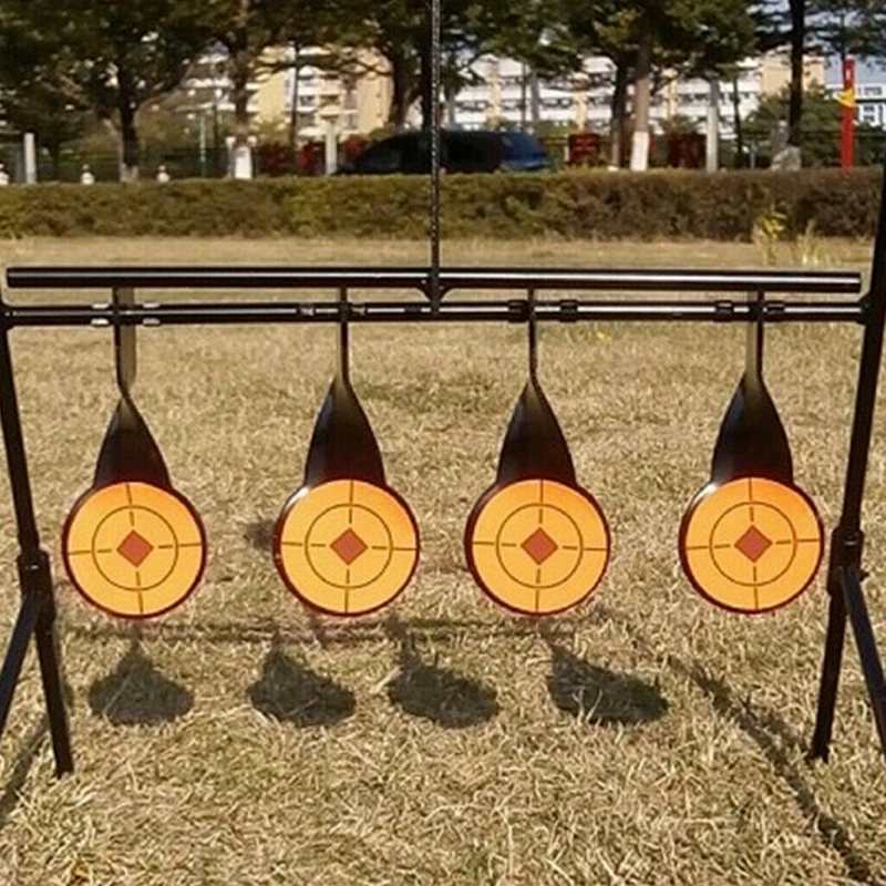 Description: Made of 3mm thickness heavy duty steel, sturdy and reusable. Self resetting target set. The target system is designed to be inserted into the ground. Create an interactive shooting experience that makes plinking and target practice fun. Compact size, easy to set up and carry. Specification: Material: Stainless Steel Size(LxWxH): approx. 27x20.5x34.5cm / 10.6x8.1x13.6inch Target Thickness: 3mm Package Includes: 1 Set Shooting Target