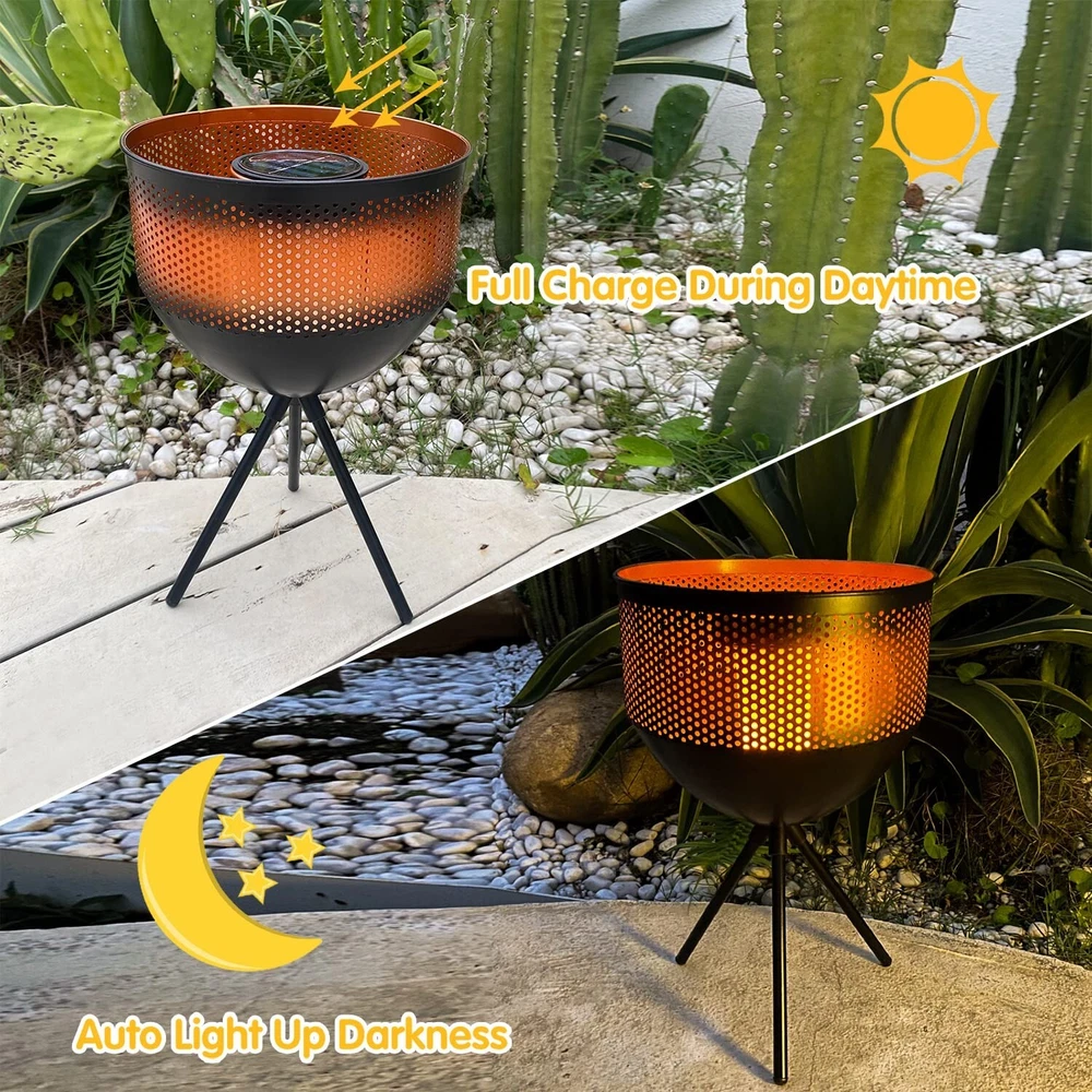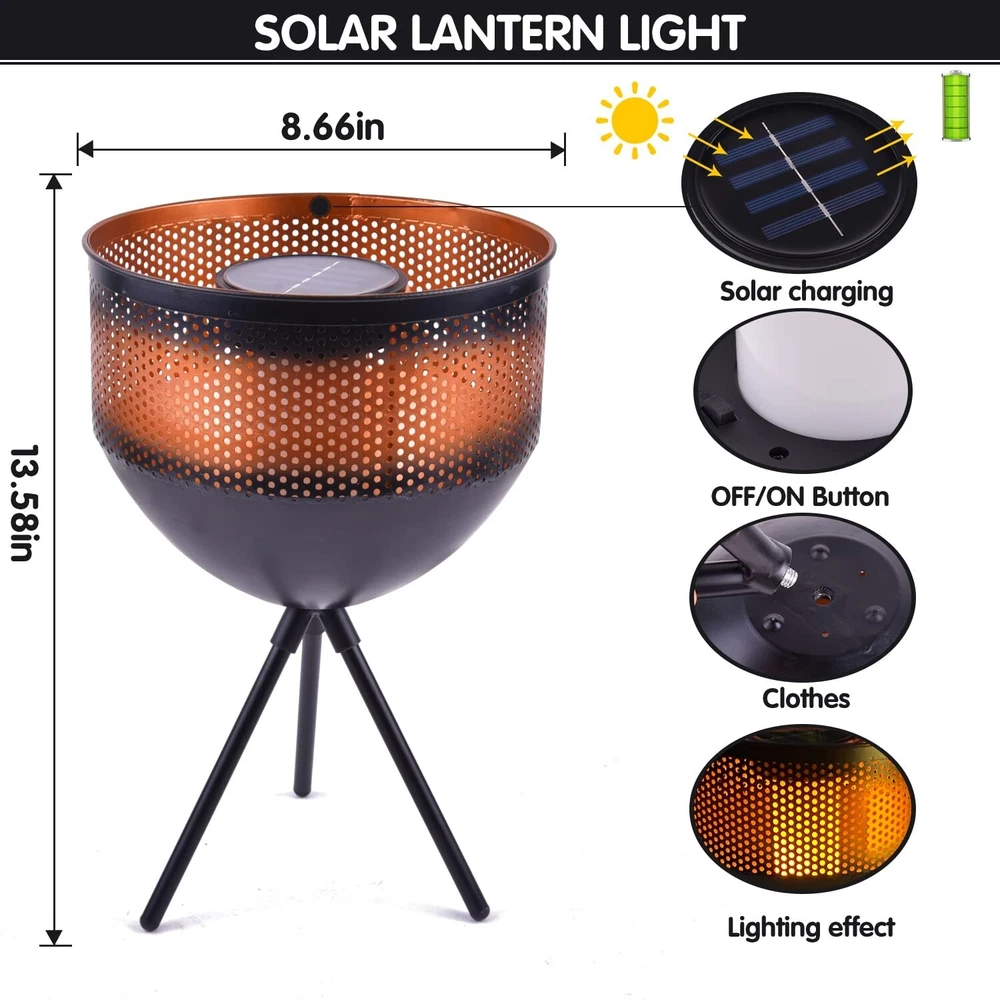 Outdoor Solar Lantern Torch Lights with Flickering Flame Waterproof Metal LED Decorative Garden Lights Solar Tabletop Lamp for Yard Patio Pathway Camping Party Decor… Product Details Size: Black Red Brand: HERJIATK UPC: 772467350645 EAN: 0772467350645 MPN: Does not apply Light Source Type: Light Emitting Diode (LED) Brand: HERJIATK Color: Gold Power Source: Solar Powered Material: Metal Package Dimensions ‏ : ‎ 9.33 x 9.29 x 7.76 inches; 1.79 Pounds Batteries ‏ : ‎ 1 AA batteries required. (included) Date First Available ‏ : ‎ February 4, 2022 Customer Reviews: 3.9 3.9 out of 5 stars 65 ratings Item Weight: ‎0.81 Kilograms Mounting Type: ‎Floor Mount Water Resistance Level: ‎Waterproof Number of Batteries: ‎1 AA batteries required. (included) Specification Met: ‎IP 44 Voltage: ‎12 Volts UPC: ‎772467350645 Item Weight: ‎1.79 pounds Package Dimensions: ‎9.33 x 9.29 x 7.76 inches Batteries: ‎1 AA batteries required. (included) Shade Material: ‎Metal Plug Format: ‎solar powered Batteries Included?: ‎Yes Batteries Required?: ‎Yes Date First Available: February 4, 2022 Flickering Flame LanternUnique brazier design, our solar torch lanterns with flickering flame is eye-catching, which looks like real flame. Warm yellow light from the round hole creates a welcoming and pleasant ambiance. This outdoor solar light is a perfect decoration for garden, patio, yard, tabletop, floor, camping, party. Auto On/OffThese flame lights are powered by solar, the solar floor lamps automatically turn the light on at dusk and off at dawn.No wire need, save energy, easy to assemble. Our decorative solar lamps can illuminate for 8 hours after a full charge, make sure you press on the button before charging. Waterproof & DurableThis large solar flame lantern is made of quality metal, rustproof finish, IP44 waterproof, corrosion resistant. Durable construction and weather resistant feature of the outdoor solar garden lights ensures long lasting performance under most weather conditions. Multiple Scene Of UseOutdoor tiki torch as a landscape decorative light is a prefect choice for garden, yard, pathway, walkway, deck and garden party, also provide a perfect campfire ambience for family party, barbecue, camping and festival celebration. It is a amagic and wonderful gift for your family and friends. Lifetime Warranty ServiceWe promise to provide customers with a lifetime warranty, and purchase without worries. If you have any questions about this waterproof solar lanterns, please feel free to contact us, we will give you a satisfactory answer within 24 hours.