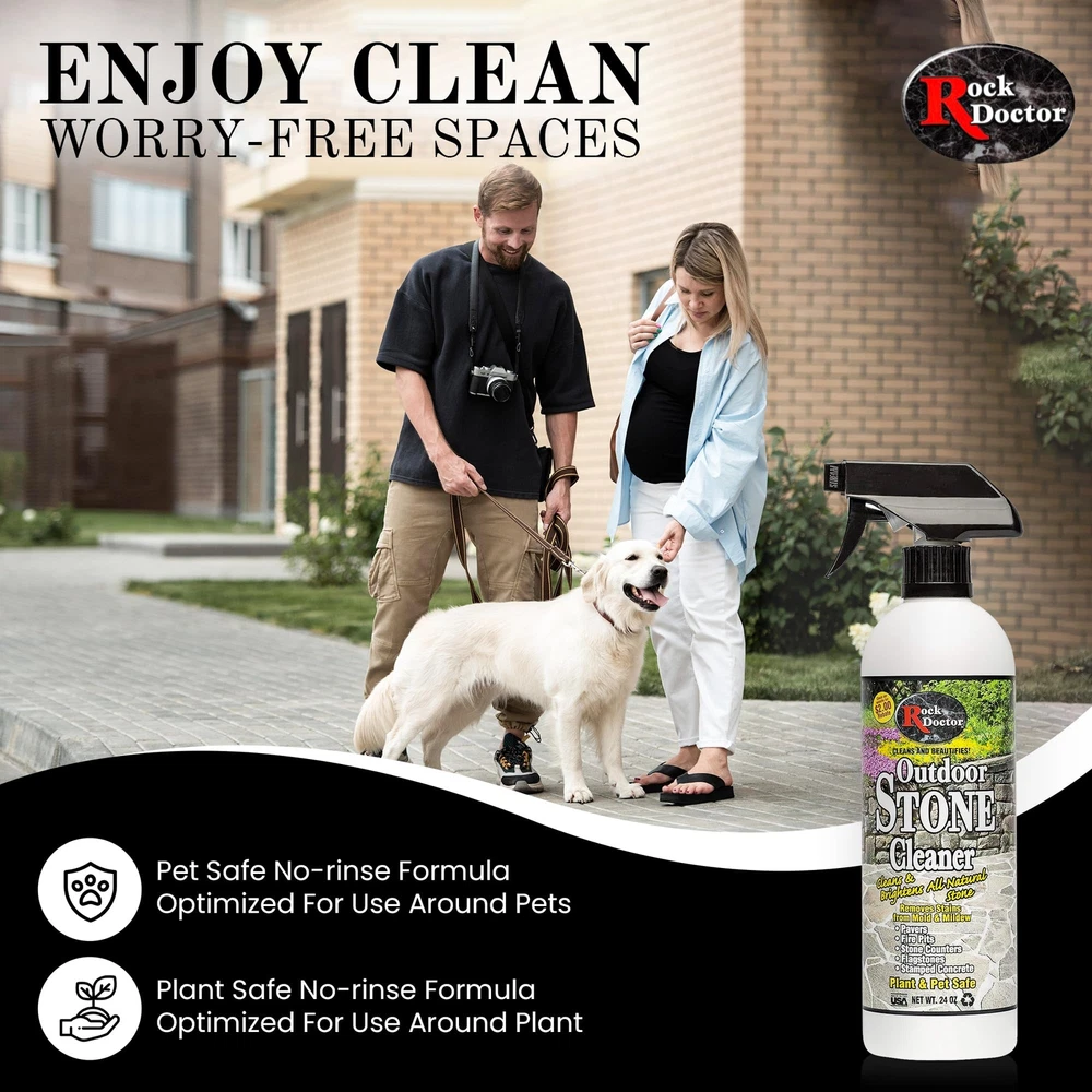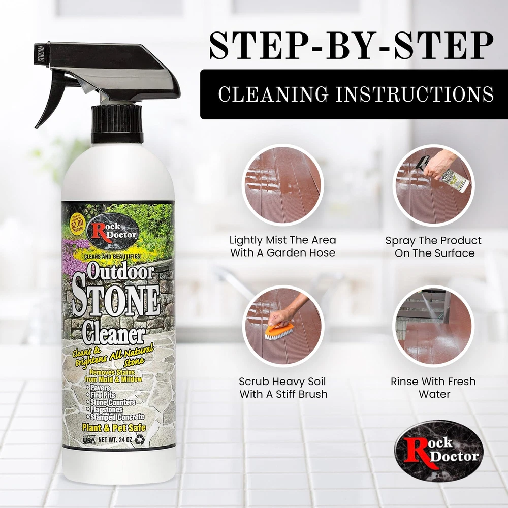 has been serving the marketplace for over 20 years with our fabulous array of stone care and kitchen cleaning products. Each product has been produced with you, The consumer, in mind. Our goal is to keep your kitchen and bath looking clean and shiny, just like it was brand new. We are proud to introduce our new outdoor stone cleaner. This product is specially formulated to clean and brighten all natural stone including pavers, fire pits, outdoor stone counters, flagstone and stamped concrete. If you have spent thousands of dollars in an outdoor kitchen you couldn't ask for a better product to protect that investment. Plant and pet safe. All Natural Stone Cleaner – Formulated with premium ingredients our stone cleaning spray works on a wide range of outdoor landscaping areas including stepstones, pavers, granite walkways, stamped concrete, and other areas. Removes Stains, Brightens Surfaces – Along with helping clean away dirt and grime our stone tile cleaner works deeply into the surfaces to help lift away stains and discoloration caused by mold and mildew for more effective and efficient support. Maintain a Vibrant Outdoor Landscape – Using our stone floor cleaner on your outdoor landscaping areas can help you create more beautiful curb appeal in the front of your home and a more welcoming, relaxing space in the backyard. Indoor and Outdoor Safe Use – Safe for all different types of stone our granite stone cleaner can be used for both indoor and outdoor projects, which makes it a great choice for both residential and commercial areas. Proudly Made in the USA – Like other products our versatile stone cleaning formula is made right here in the United States under strict guidelines to ensure it’s safe and effective. And all backed by support you can count on.