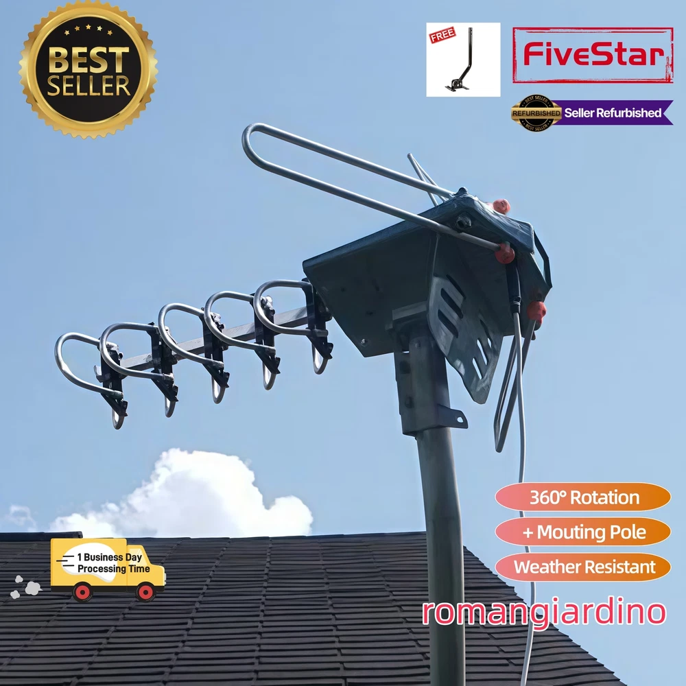 Outdoor TV Antenna Motorized Pole 360° Rotation 4K HDTV Amplified Hot Deal
