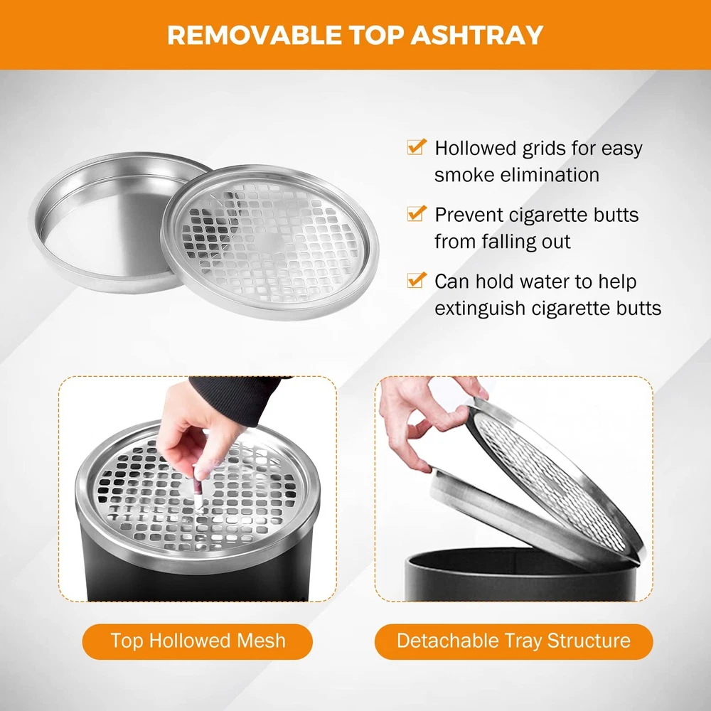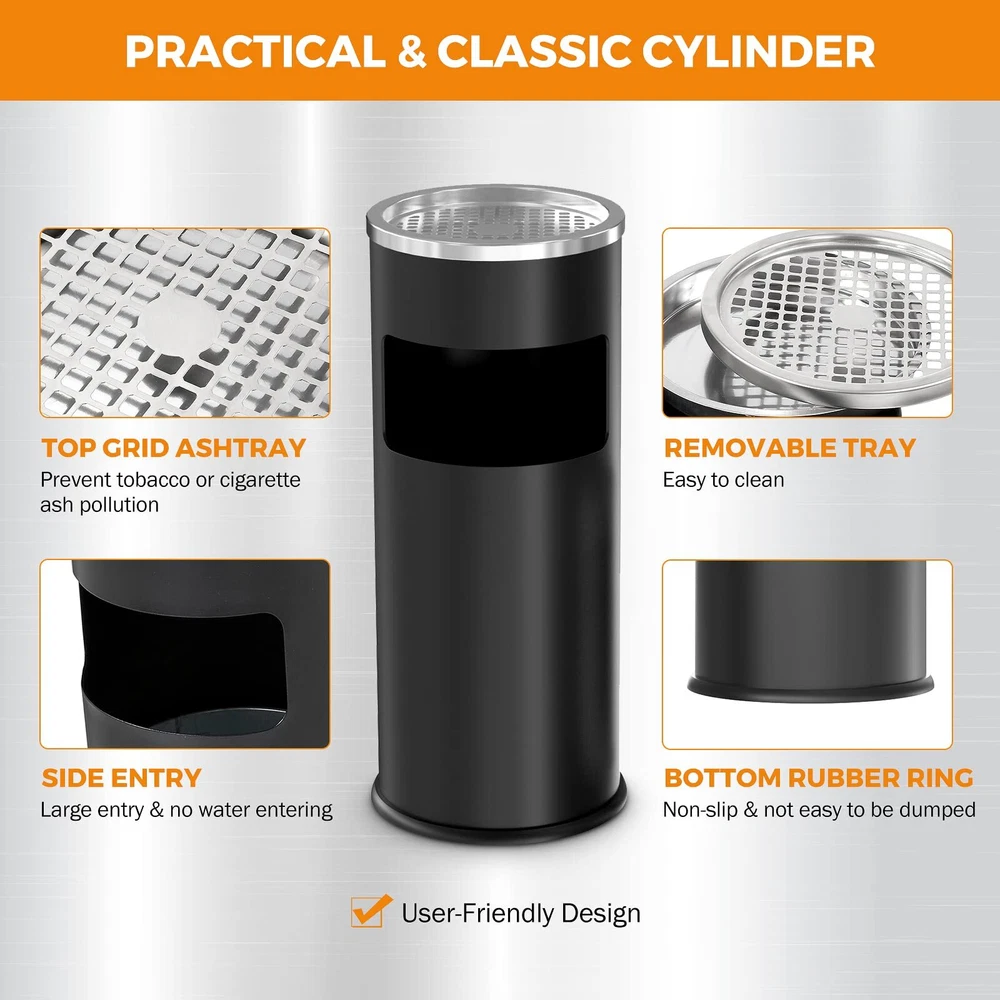 Specifications: Material: Stainless Steel Size: 25 x 61cm/ 9.8" x 24"(D*H) Descriptions: The trash receptacles with stainless steel ash urn molded into top of the receptacle lid are functional. Stainless steel construction provide great durability. This is a round garbage can with an stainless steel ashtray on top for cigarette disposal. For commercial, medical and industrial use. Equiped with an inner bucket for easily take out the trash. Designed to keep liner bags hidden from view. It is good for indoor and outdoor environments. Instructions: Step1: slip waste bag over inner bucket Step2: ribs hold bag in place Step3: place exterior over inner bucket Step4: secured and hidden waste bag Package Includes: 1 x Trash Can Dimensions: 25 x 61cm / 9.8" x 24" (D * H); Material: stainless steel. SIMPLE DESIGN - Cylindrical body with rounded edges to prevent hand scraping. UPGRADED MATERIAL - Worried about rusting in the outdoors? Don't worry, outdoor trash cans have been updated from metal to thickened stainless steel, making them more resistant to corrosion and suitable for indoor and outdoor use. The surface layer is rust-proof painted or brushed material, beautiful and durable. It can be placed outdoors without fear of the wind and sun. EASY TO CLEAN - modern trash can comes with a detachable, high-quality galvanized liner and a removable tartan tray on top. Recommended for putting grit, water or small pebbles. Easy to clean, practical and convenient. HIGH APPLICABILITY - Suitable for indoor and outdoor use. Can be placed in the kitchen, living room, bedroom, courtyard, toilet, etc. It can also be used for industrial, medical, and industrial purposes, in hospital corridors, next to hotel elevators, in outdoor parks, etc.