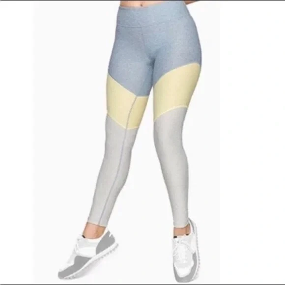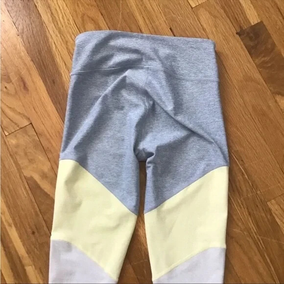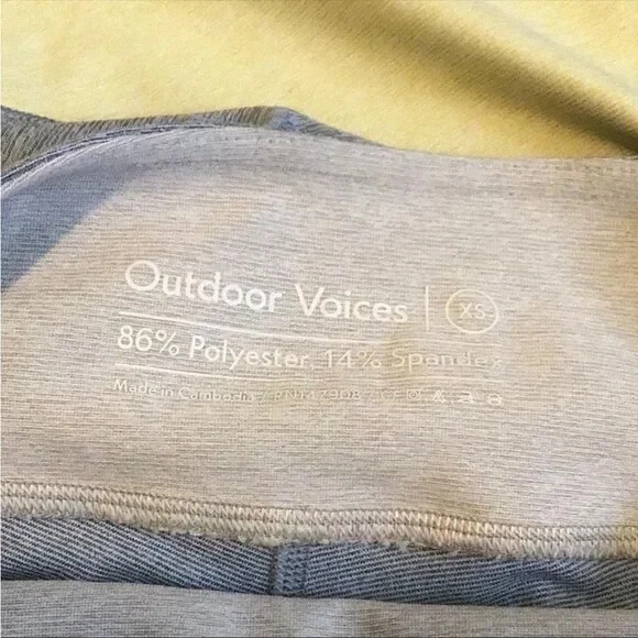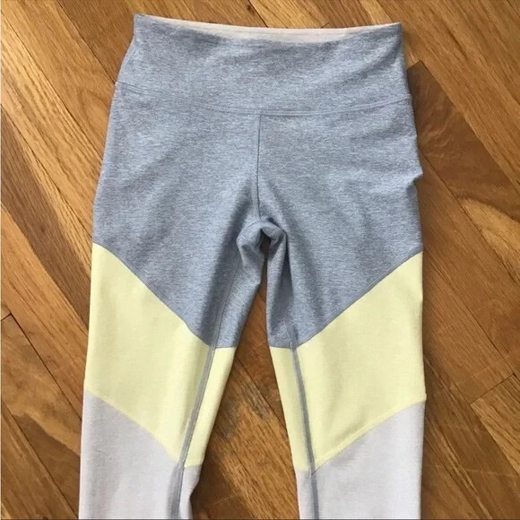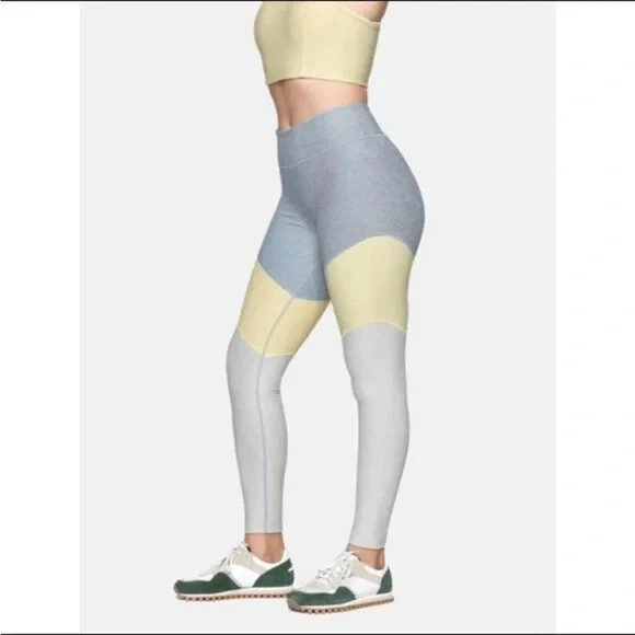 Outdoor Voices 7/8 Springs Leggings In Blue quartz/Dandelion/Maple These stretchy, eight-panel leggings will re-energize someone's workout with a snug compression fit to support muscles while reducing fatigue and recovery time. Moisture-wicking fabric dries quickly to keep you cool and comfortable - 86% polyester, 14% spandex - Machine wash, tumble dry - Gray yellow and beige Size Xs Measurements laying flat Waist 11 Rise 9 Inseam 26 •No Returns No Holds No Trades