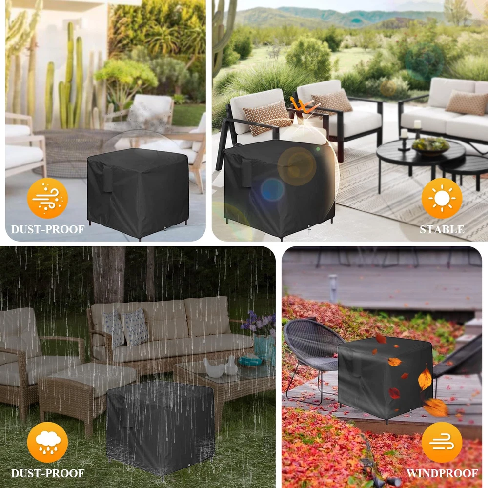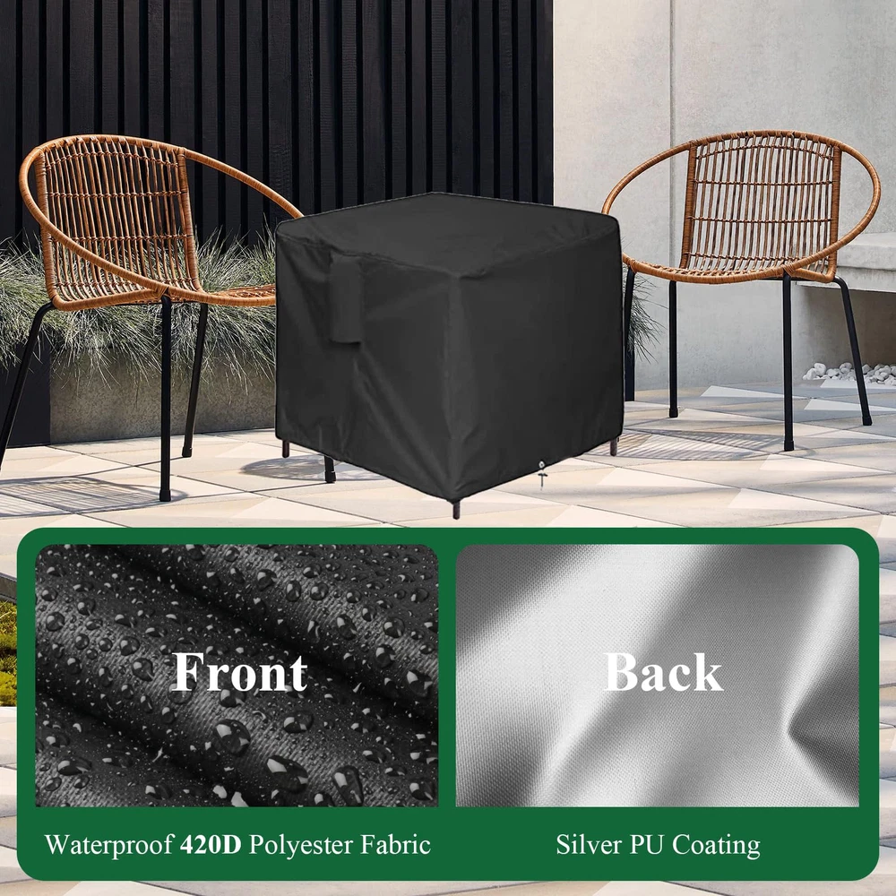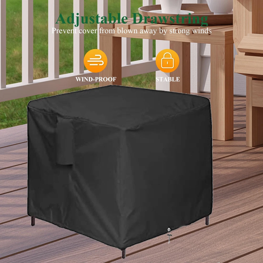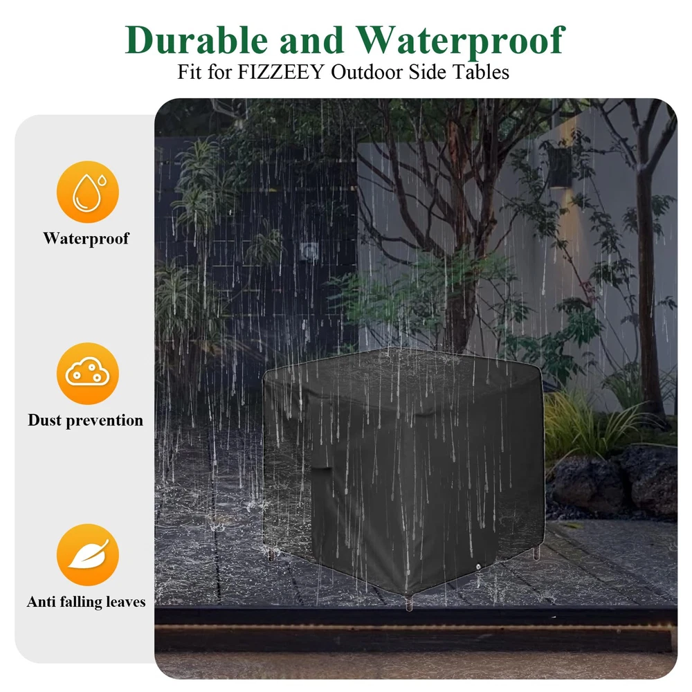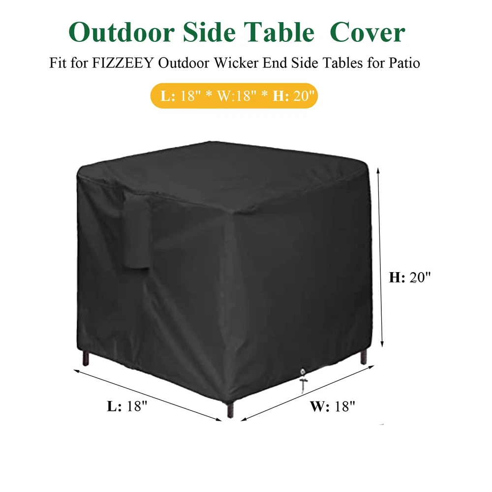 Specification Colour: Black Material: 420D Oxford Fabric Perfect for outdoor cooler side table, outside wicker tall table, coffee table, cocktail table, wine cabinet, ice table, hot tub pool side table, outdoor wicker end side tables , outdoor umbrella stand, wicker side table, small rattan umbrella base. This Patio Side Table Outdoor Side Tables Cover is easy to clean. You just wipe it with a damp cloth, no need to worry about the cleaning problem! Outdoor Side Table Cover : 18”L x 18”W x 20”H. Suitable for FIZZEEY Outdoor Wicker End Side Tables, also suitable for more square furniture, universal patio small rattan of the same size Fits more Square Furniture: Perfect for outdoor side table, patio small rattan, wicker coffee table, balcony table, outside end table. Please check your outdoor side table 's dimensions Keep Your Outdoor Wicker End Side Tables Clean: 420D Oxford fabric with PU coating outdoor wicker end side tables cover, waterproof and dust-proof, protect your favorite outdoor side tables from rain, snow, dirt Windproof Patio Small Rattan Cover: The bottom of the patio small rattan covers has drawstring to secure in strong windy weather, prevent being blown away by the wind Easy to Clean: You can clean it easily when it is dirty. Simply hose with water or wipe with a damp cloth , and allow it to dry in the sun for next use