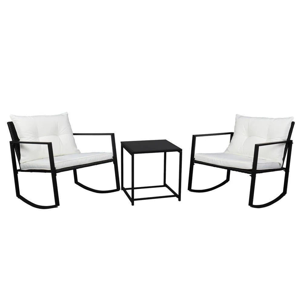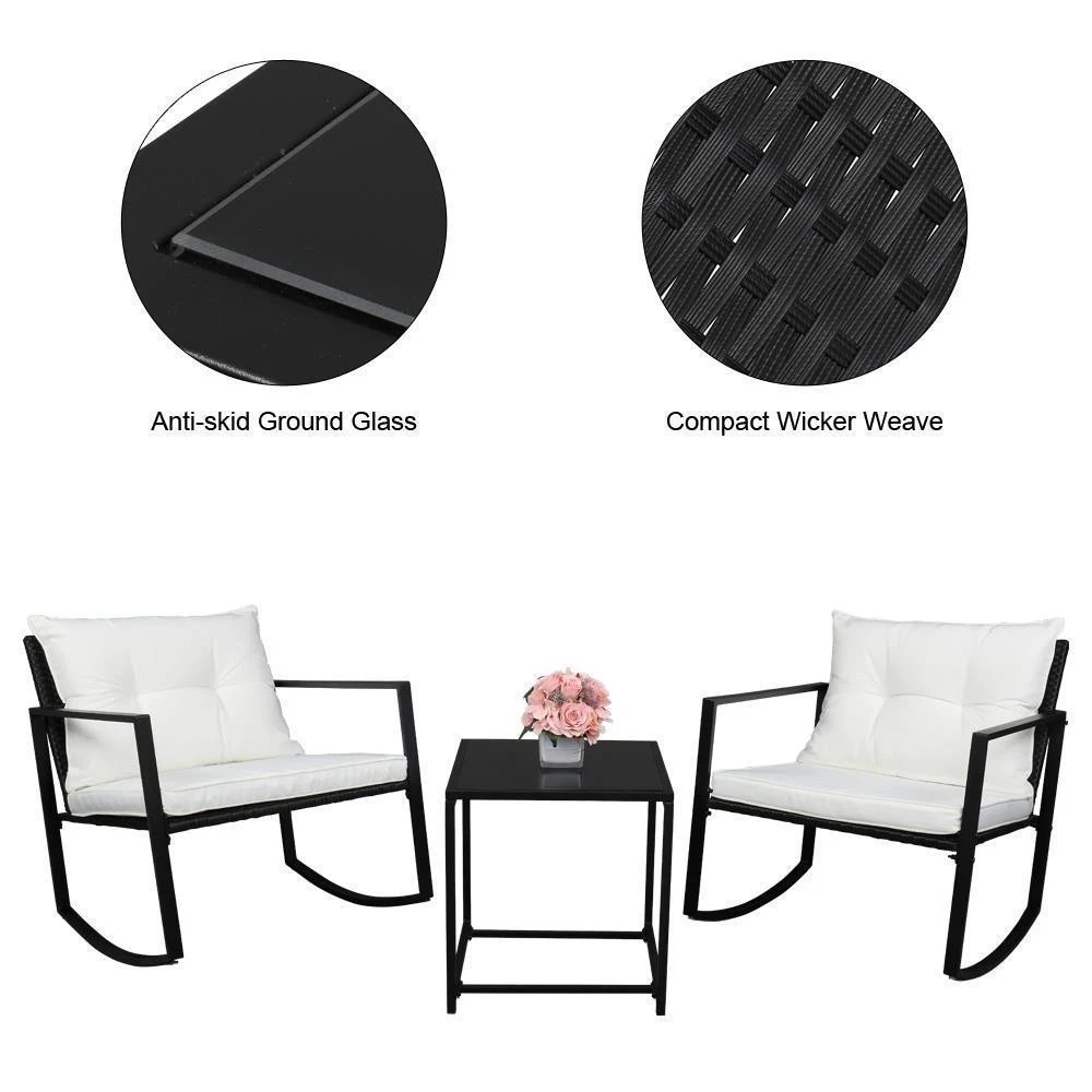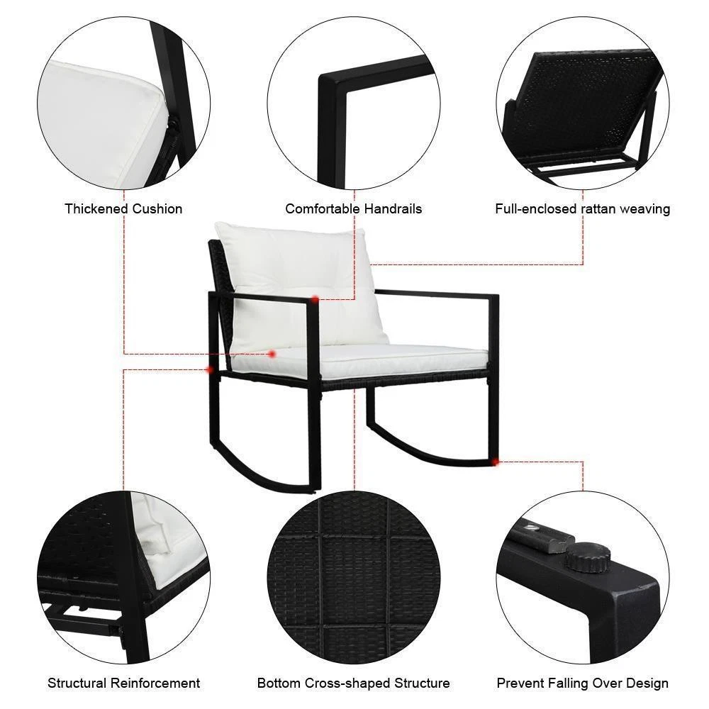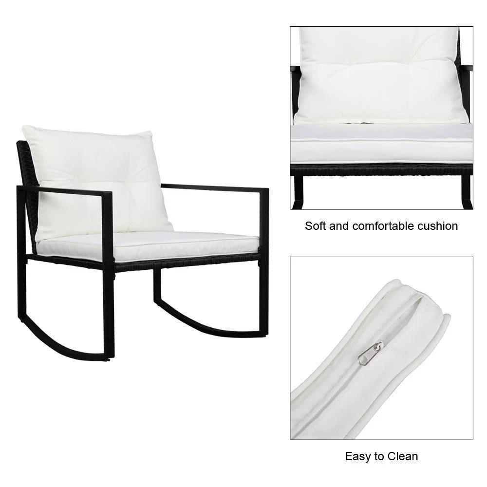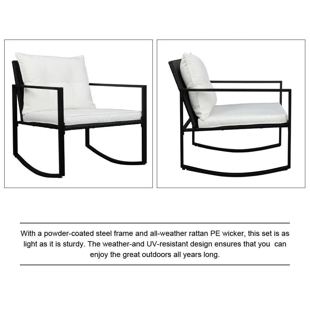 Outdoor Wicker Rocking Chair Set with Cushions and Side Table Rattan Patio Furniture