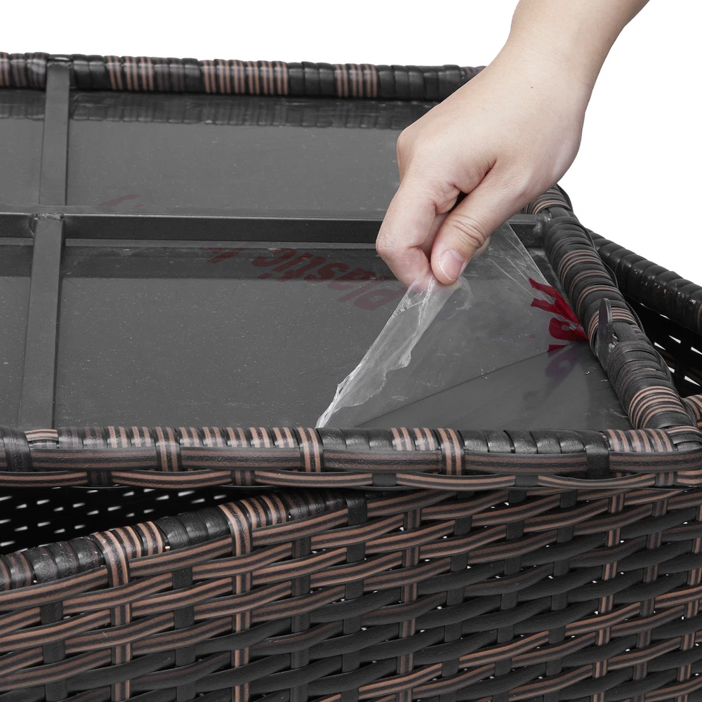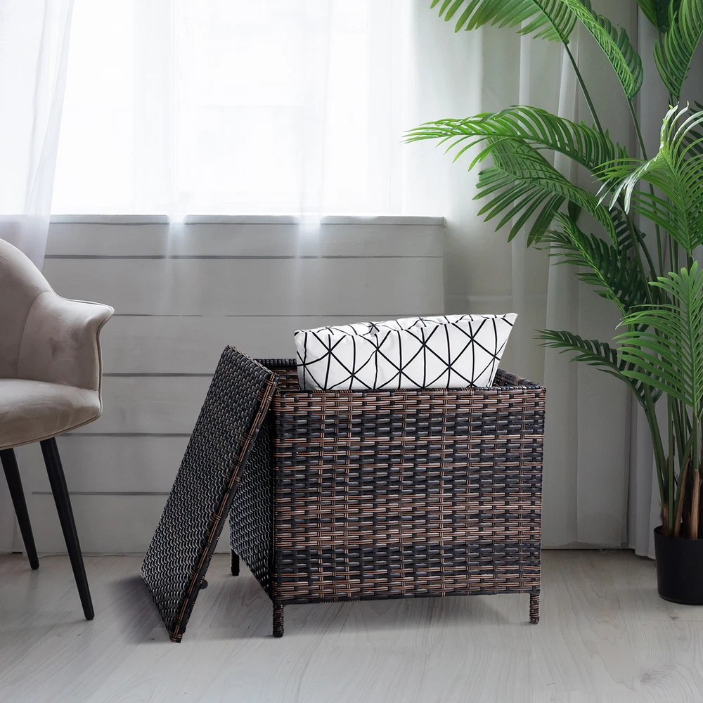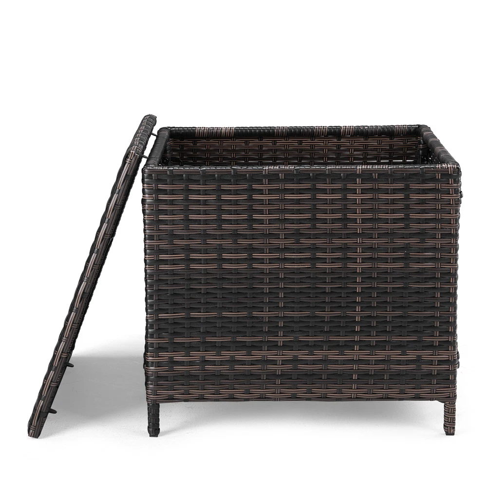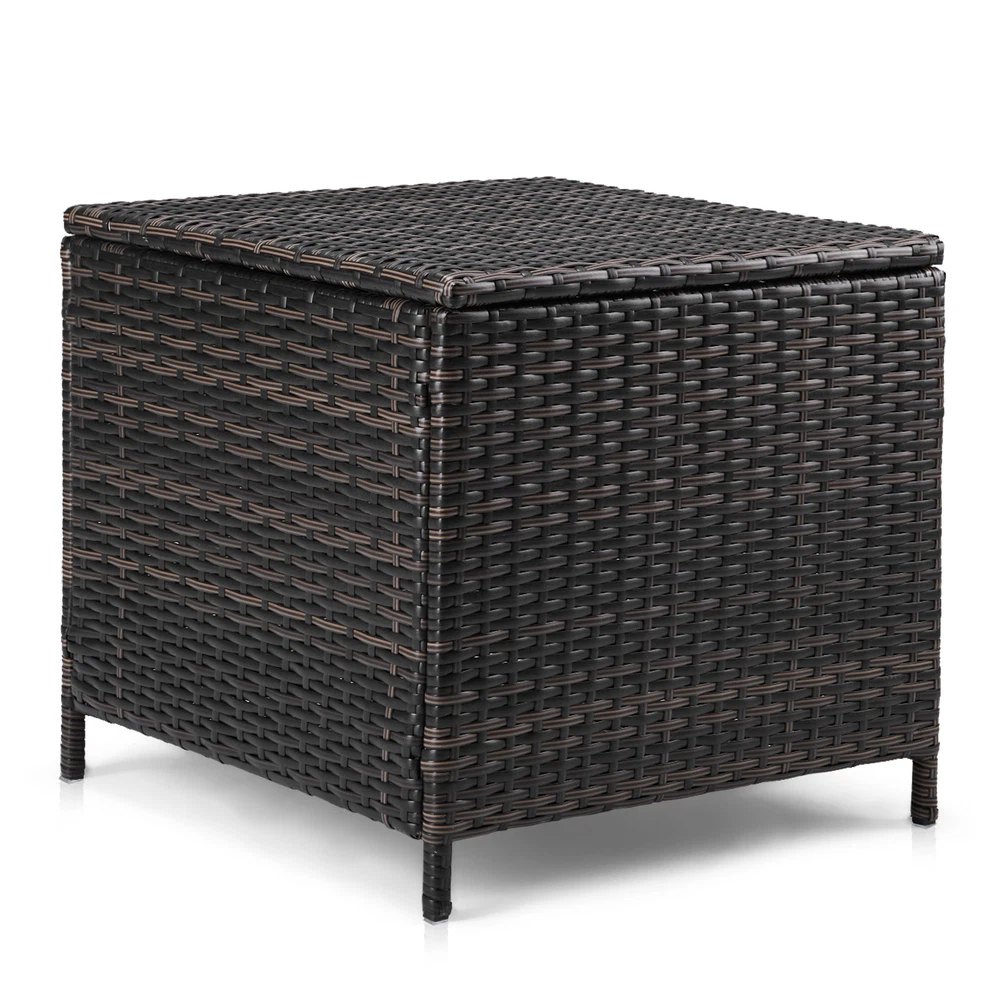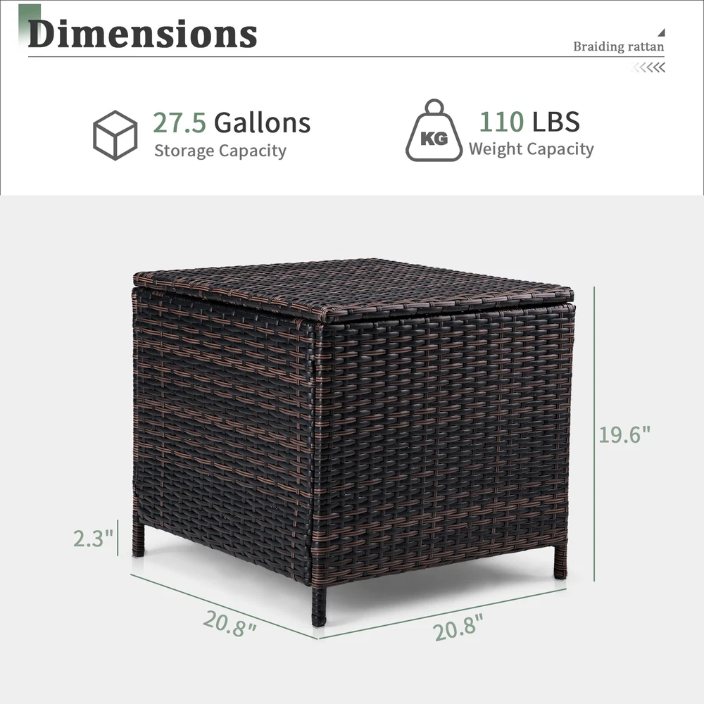 Introductions: Enhance your outdoor space with the Outdoor PE Wicker Side Table with Storage. This versatile piece serves as both a stylish side table and a convenient storage container, offering a practical solution for organizing furniture covers, toys, gardening tools, and more. It features an all-weather handwoven PE rattan design that adds a of elegance to any patio or garden. The sturdy steel frame ensures durability and stability, while the 27-gallon storage capacity provides ample space for your belongings. Features: 1. Spacious Storage: With a generous 27-gallon capacity, this side table offers ample storage space for furniture covers, toys, gardening tools, and other items. 2. Versatile Design: This multipurpose piece serves as both a convenient side table and a practical storage container, offering dual functionality. 3. All-Weather PE Rattan: The exquisite handwoven PE rattan construction is designed to withstand various weather conditions, ensuring-lasting durability. 4. Sturdy Steel Frame: The robust steel frame provides stability and support, making this side table reliable for everyday use. 5. Stylish and Elegant: The brown gradient rattan adds a of sophistication to your outdoor decor, elevating the aesthetic appeal of your patio or garden. Specifications: 1. Material: PE Rattan, Iron, PVC Board 2. Color: Brown Gradient Rattan 3. Overall Dimensions: (20.9 x 20.9 x 19.7)" / (53 x 53 x 50) cm 4. Storage Dimensions: (20.9 x 20.9 x 14.6)" / (53 x 53 x 37) cm 5. Side Panel Height from Ground: 2.4" / 6 cm 6. Storage Capacity: 27 Gallon 7. Weight Capacity: 112 lbs / 50 kg 8. Net Weight: 15.9 lbs / 7.2 kg Package Includes: 1 x Side Table with Lid 1 x Set of Hardware Assembly 1 x English User Manual