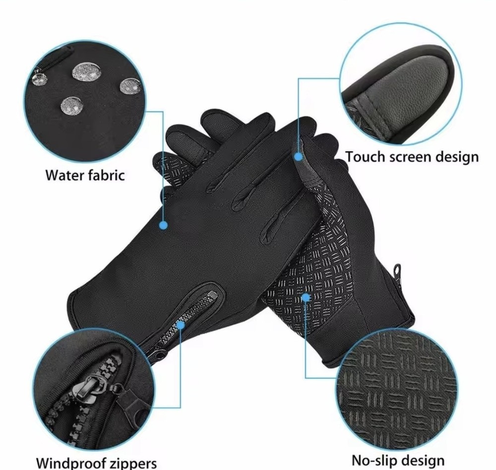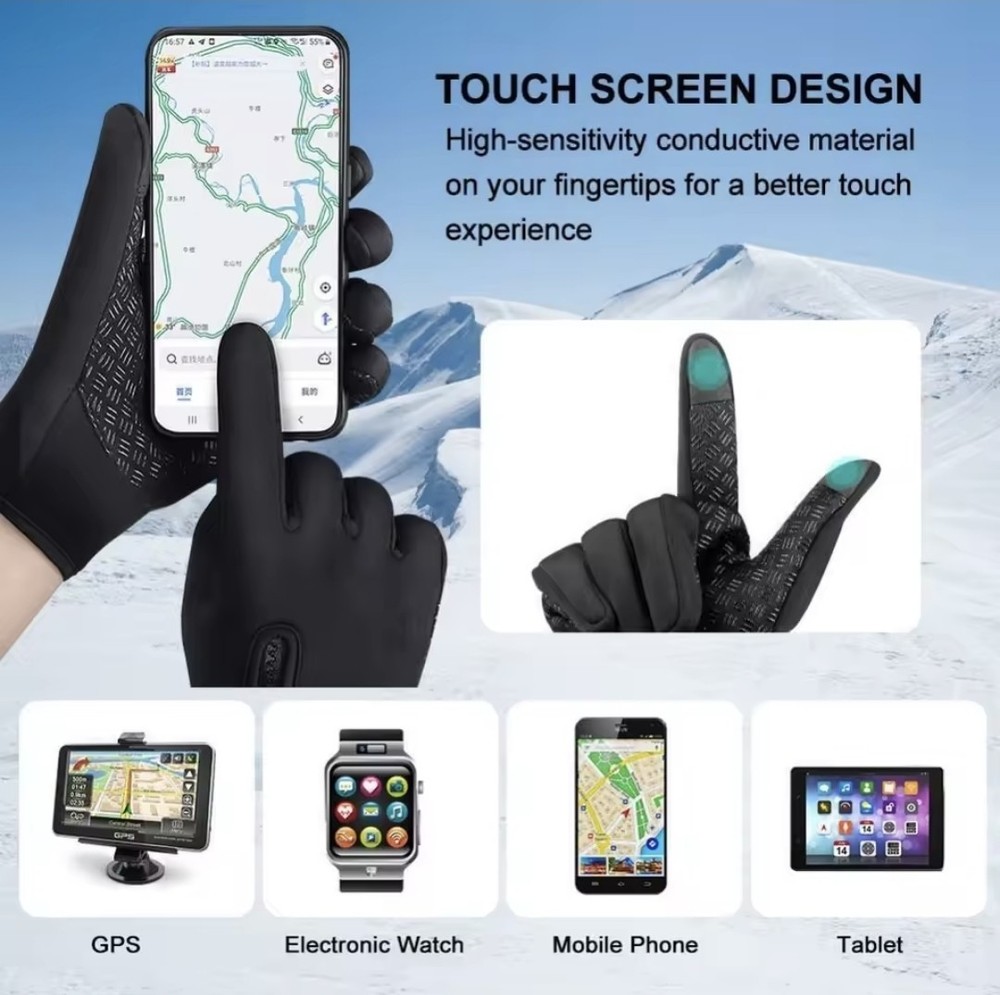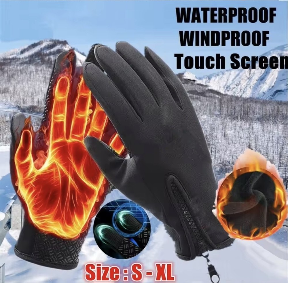 This product is a pair of outdoor winter gloves designed for men and women, featuring a solid black color with a warm polyester lining and insulation. The gloves are waterproof and windproof, making them suitable for activities such as cycling and driving in cold weather. They are also made with a fleece fabric type and a polyester trim material, providing comfort and protection for outdoor use in the winter season. The gloves have a wrist length and are in size S, suitable for casual and activewear occasions.