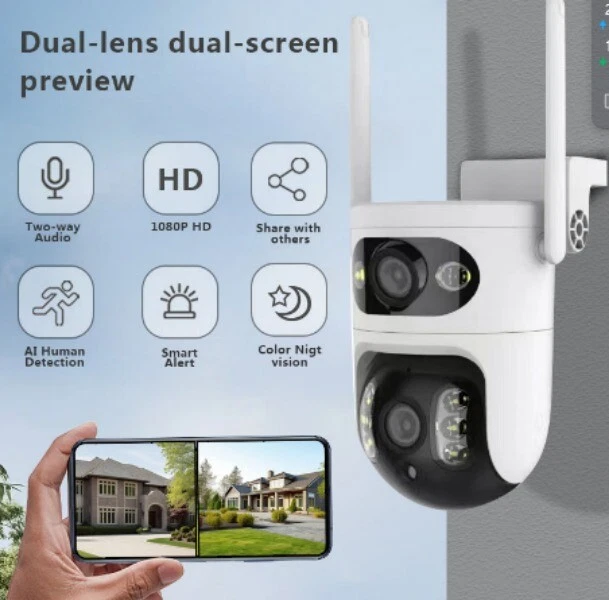 Function: 1.3MP * 2 high-definition pixel display. Rotate 90 degrees up and down, and 310 degrees left and right. 3. Remote viewing through mobile app, regardless of distance, watching anytime, anywhere. 4. Automatically detect anomalies, mobile software alerts, and the camera itself can also issue warnings. 5. Dynamic human body object intelligent automatic tracking. 6. Supports multiple viewers to watch simultaneously and can be shared with friends and family. 7. Bidirectional voice intercom, which can be used at any time through the camera voice intercom using mobile software. 8. Two video storage methods. 8.1- Memory card storage (maximum support 128GB). 9. Even if the cloud storage playback device is lost or damaged by unfriendly people, the recording can still be watched. Specifications: Mobile tracking:support Monitor image quality:2304 * 2592/640 * 720 Video quality:2304 * 2592/640 * 720 Image motion detection:support Minimum illumination:0.1LUX/F1.2 Capture function:support Video flipping:support Encoding standard: G.711 MiTou: Support Speaker: Supports Video file size: 2.5-4.5GB/day (16GB TF card can record for approximately 5 days) Video recording methods: manual recording, dynamic detection recording, timed recording, alarm recording, all day recording Video saving: TF card/cloud Remote playback: support Alarm triggering: video push, speaker alarm, alarm recording Wired network port: not supported Wireless network: 802.11b/g/n Stream: Dual stream Network Protocol: Supports TCP/IP Transmission mode: intelligent P2P, streaming media forwarding WIFI networking: WI-FI, Bluetooth support, Soundwave code, AP hotspot IR-CUT: Supports TF card: Supports up to 128GB TF card WIFI: Supports Reset button: Supports Power supply: 5V Applicable places: flat placement, wall mounted, and hoisting in homes, shops, schools, supermarkets, factories, and other places Working temperature: -20 ℃ -+55 ℃ Working humidity: 10% -90% Dual lens: 3.6mm Camera angle: 90 ° Rotation angle: Horizontal: 310 °; Vertical: 90 ° Lamp board: Upper: 2 red and white integrated, 4 infrared. Below: Two red and white in one. Bare machine size: 126 * 84 (mm) Packing list: 1.5G Camera X1 2. Instruction manual X1 3. Screw package X1