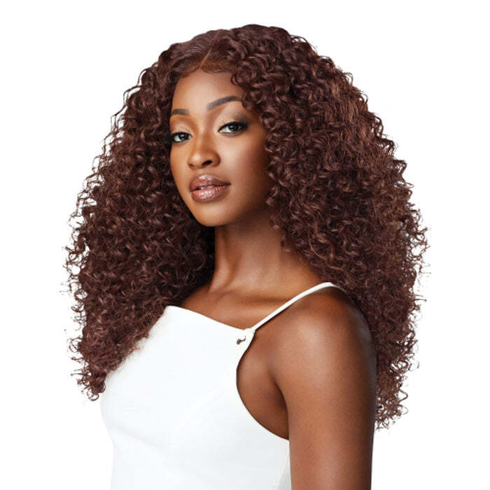 Outre Synthetic Lace Front Wig Perfect Hairline 13x6 - DOMINICA COLOR SHOWN ON MODEL: HAVBRN, DRCHOCRM MATERIAL: Synthetic Hair TYPE: Lace Front Wig LENGTH: Medium Short HEAT SAFE: Yes up to 400°F DESCRIPTION: 13x4 Lace Frontal No Plucking Required Baby Hairs Adjustable Wide Elastic Band Heat Styling Friendly Ear to Ear Lace Frontal Back Comb For Secure Fit Baby Hairs Included