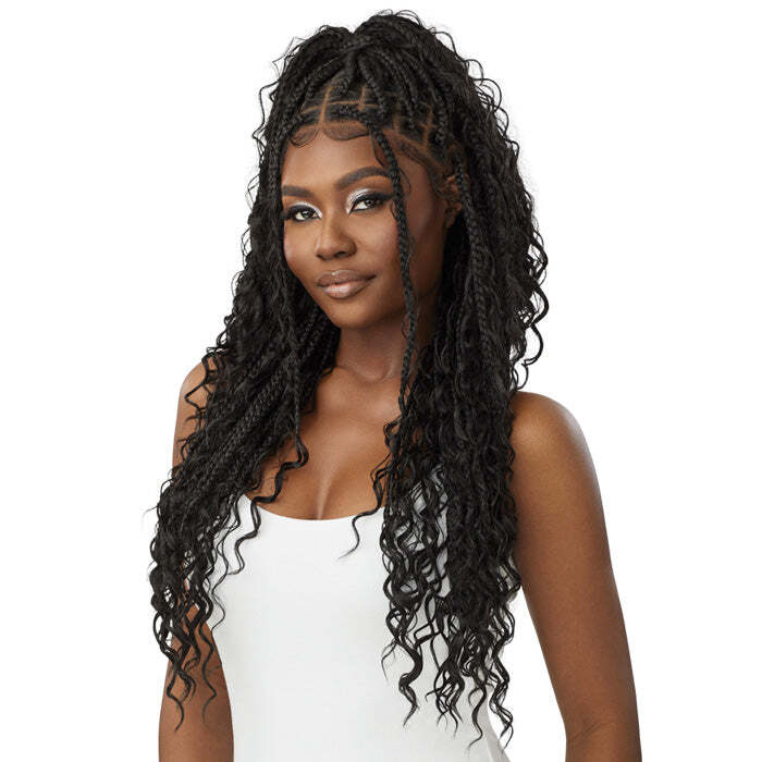 Outre Whole Lace Wig Glueless Pre-Braided Knotless HD Whole Lace Wig - BOHO BOX BRAIDS 28" COLOR SHOWN: 1B, DR1B/2T425 BRAND: Outre TYPE: Whole Lace Wig STYLE: Braided MATERIAL: Synthetic Hair LENGTH: 28" HEAT RESISTANT: Yes DYE/BLEACH/PERM: No DESCRIPTION: 100% Fully Hand-Tied Whole Lace Wig Individually Knotted Strands Track-Free / Breathable / Lightweight Cap Stretchy, One-Size Fits All Cap Freestyle Parting and Styling Versatility Soft, Flexible Braids and Baby Hair Included Fast, Easy and Effortless Glueless Installs Pre-Attached Elastic Band Pre-Braided Knotless Box Braids Extra Long Style