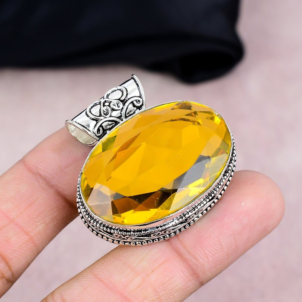 Features:HandmadeDiamond Clarity Grade:N/AChain Type:N/APendant Shape:Same As PictureClosure:Same As PictureColor:SilverDiamond Color Grade:N/ANumber of Diamonds:N/AMain Stone Creation:NaturalTotal Carat Weight:10 carat and aboveCountry/Region of Manufacture:IndiaCut Grade:N/AMain Stone Color:YellowNumber of Gemstones:1Type:PendantCollection:HandmadeOccasion:Anniversary, Birthday, Christening, Christmas, Engagement, Father's Day, Graduation, Mother's Day, Valentine's Day, WeddingMetal Purity:925Secondary Stone:N/ABase Metal:Sterling SilverMetal:Sterling SilverBrand:HandmadeTheme:Beauty, Bohemian, Ethnic, Halloween, Love, NatureStyle:PendantMain Stone Treatment:Not EnhancedCertification:N/ANecklace Length:5"Material:GemstoneMain Stone:CitrineColored Diamond Intensity:N/APendant/Locket Type:Same As PictureMain Stone Shape:OvalCountry of Origin:IndiaSetting Style:Bezel