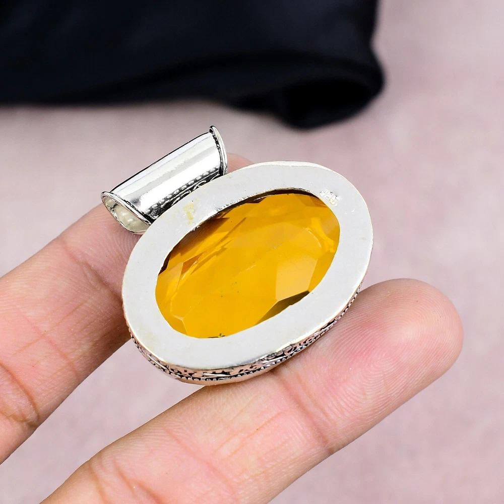 HomeOval Citrine Gemstone Pendant in 925 Sterling Silver Handmade Jewelry Gift for Her