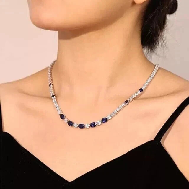 $ 149.22Heart Cut Simulated Tanzanite Engagement Tennis Necklace in 14K White Gold Finish