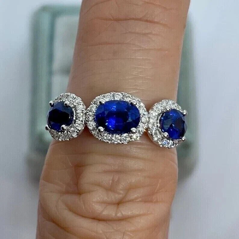 Emerald cut simulated blue sapphire ring in 14k white gold plated for women