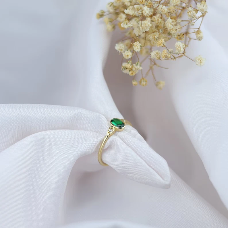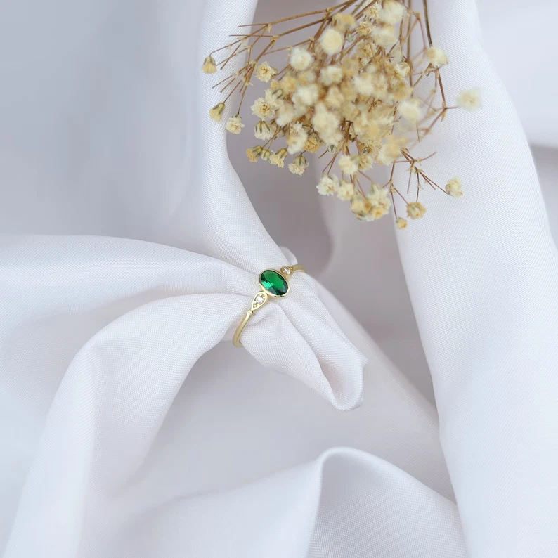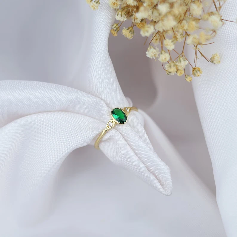 KJ_JEWELRY This beautiful ring features a 2.60Ct oval cut simulated emerald set in yellow sterling silver. The dainty design is perfect for various occasions like engagements, weddings, birthdays, and more. The ring is handmade with a nickel-free sterling silver base metal, adorned with a simulated diamond secondary stone for added sparkle. It can be personalized and engraved according to the buyer's requirements, making it a unique and special piece for anyone who wears it. Perfect for those who appreciate beauty and want a touch of elegance in their jewelry collection. Payment Policy 1. We accept payment via PayPal only. 2. You can also use a credit card for payment by using PayPal as a guest. 3. Payment is required within 3 days after buying. Shipping Policy 1. We ship worldwide. 2. Handling time is 5 business days after receiving clear payment and ring size confirmation. ( Business days excludes Saturdays / Sundays and Public Holidays. 3. Delivery time will be 5-10 working days (which may extend during peak season time). 4. Kindly provide complete address and contact number for hassle free shipping. Expedited Shipping Expedited shipping with online tracking and delivery confirmation within 3-5 working days can be availed on request. Return Policy 1. We accept returns only if there is any manufacturing defect or in transit damage. 2. Refund amount is based on product's price you have purchased for. 3. Please remember to contact us before sending any item back. 4. For incomplete or wrong address we are not liable for any return. 5. If the buyer wants to return the item for his/her own personal reasons ( without any valid reason of item received in damage condition or unless it is defective ) the return shipping charges will be born by buyer. Buyer's Feedback 1. Your feedback is very important to us. 2. Do remember to give us 5 star rating if you are satisfied with our product and service. 3. If you have any queries related to the product or service you can expect a reply within 12-48 hours of inquiry. 4. Do contact us before leaving a negative or neutral feedback to get a 100% solution for the dissatisfaction caused to you. Contact Us Feel Free to contact us for any queries about the product through " Ask Seller a Question " Thank You Visit Again.
