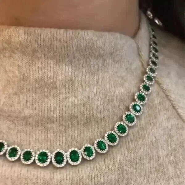 Multi-Shape Simulated Diamond 925 Silver Gold Plated Women's Tennis Necklace