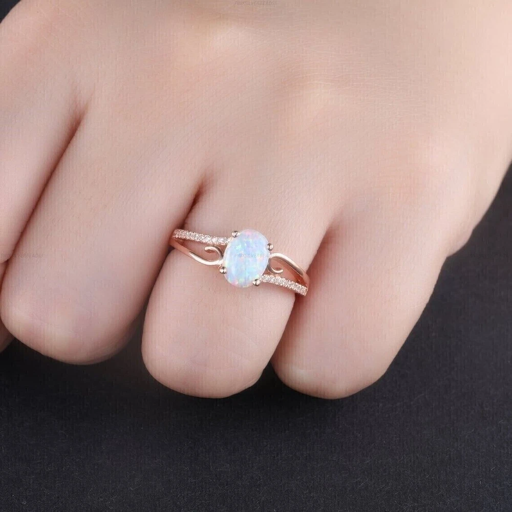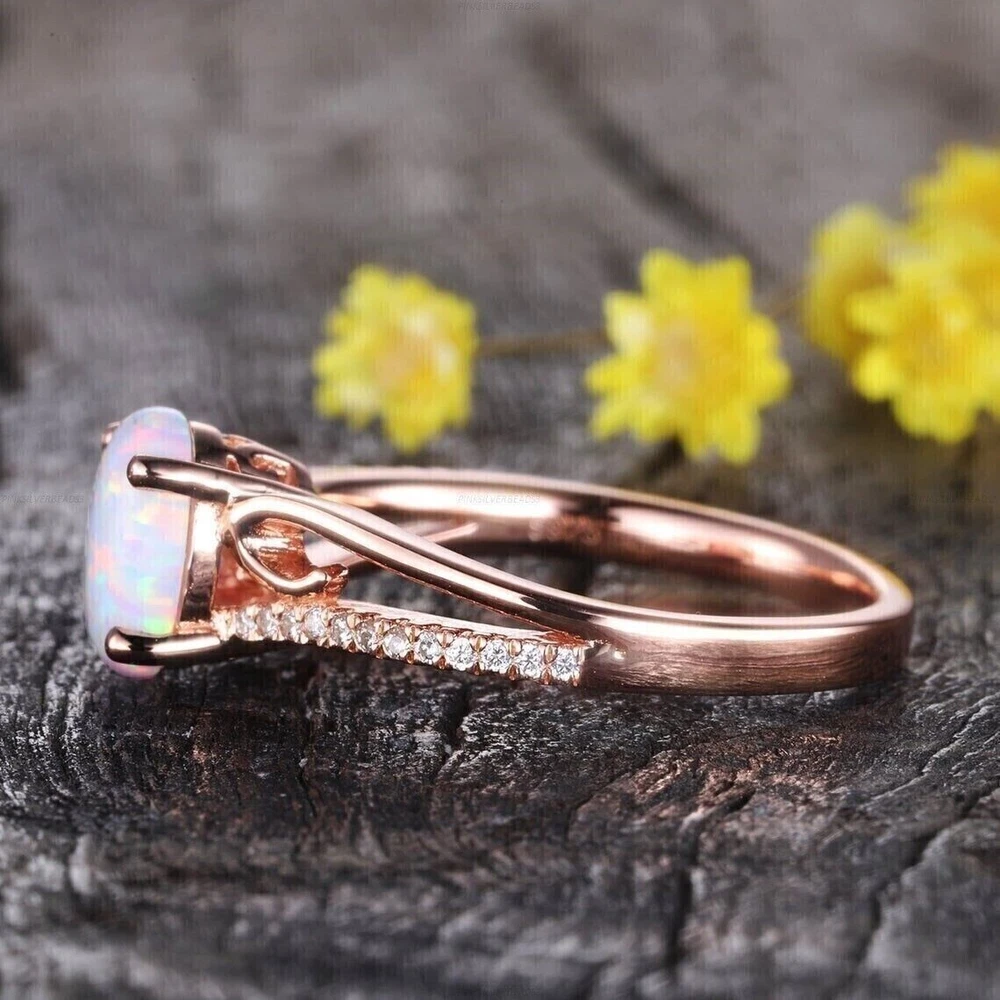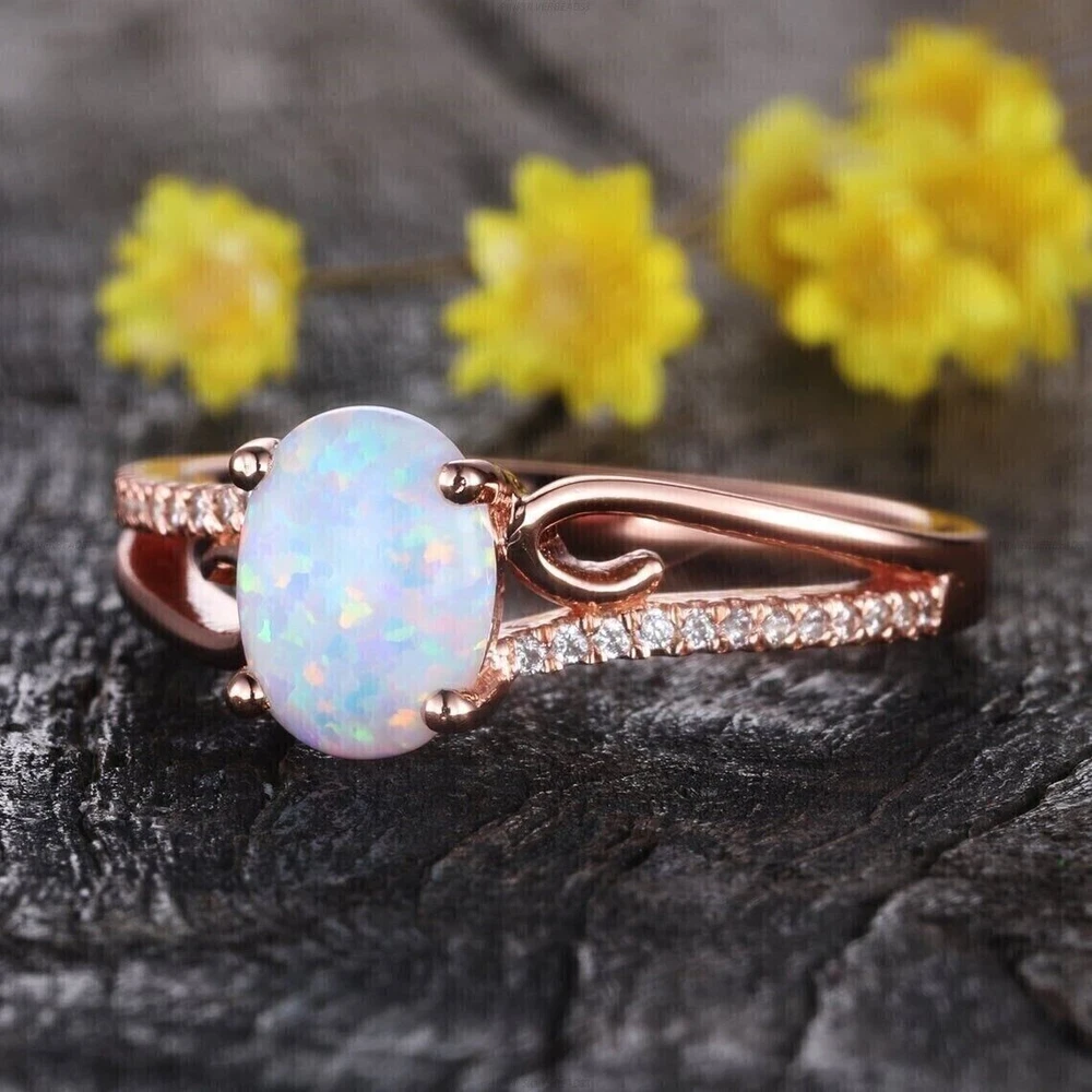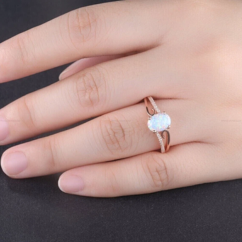 Antique: No UPC: Does Not Apply Theme: Beauty Color: Pink Number of Gemstones: 01 Main Stone Shape: Oval Vintage: No Features: Engraved Sizable: Yes gtin13: Does Not Apply Country of Origin: Unknown Brand: sp_jewels Type: Ring Seller Warranty: No Handmade: Yes Shape: Oval Seller Notes: ““Freshly made on order with quality and buyer satisfaction. No old stocks.”” Secondary Stone: Simulated Diamond Base Metal: Rose Gold Plated Main Stone: Simulated Fire Opal Metal: Sterling Silver Ring Size: All Size Available Occasion: Anniversary, Birthday, Christmas, Engagement, Father's Day, Graduation, Mother's Day, Valentine's Day, Wedding Main Stone Color: White Metal Purity: 925 Material: Gemstone, Stone, metal Wholesale: Yes Style: Band, Eternity Setting Style: Prong Cut Grade: Excellent Country/Region of Manufacture: India Personalize: Yes Main Stone Creation: Simulated