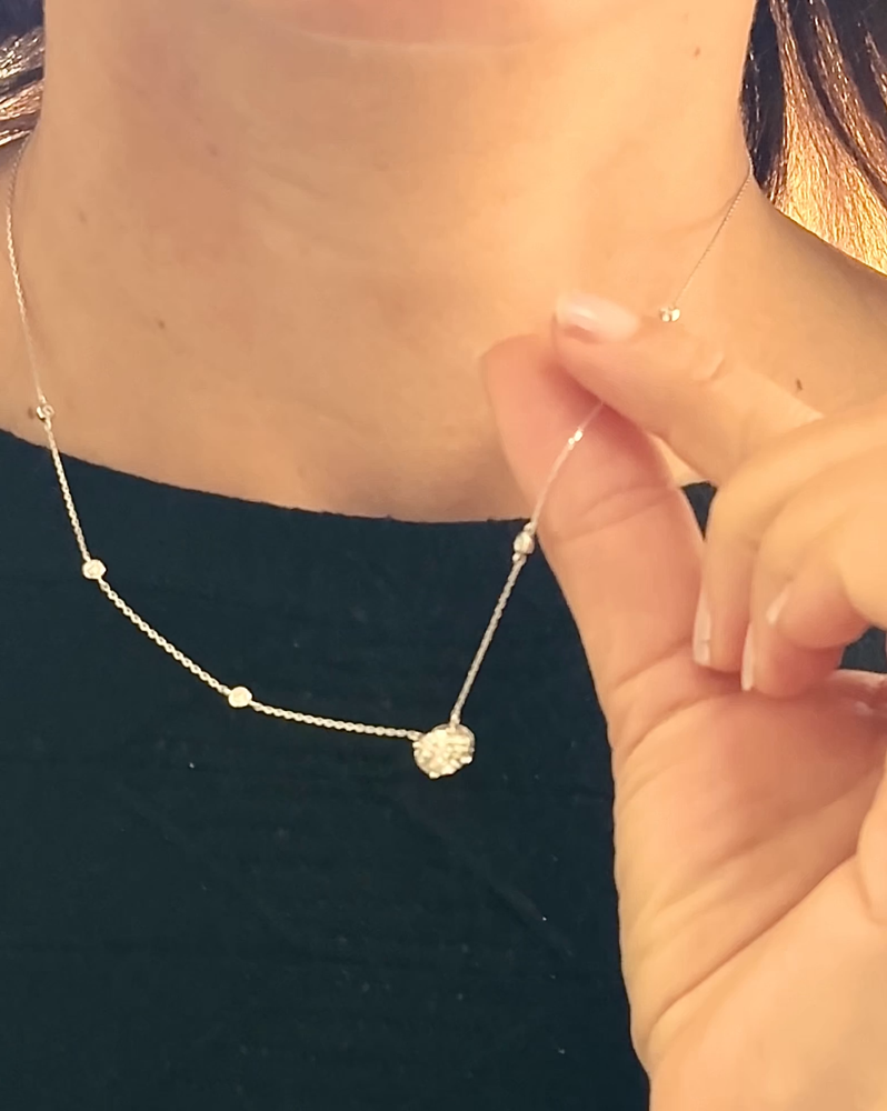 Lab grown diamonds are in fact chemically, optically and physically identical to earth mined diamonds, but are more ethical, beautiful and affordable than any diamond we will ever get out of the earth The singular difference between lab-created diamonds and mined diamonds is their origin. All of the aspects of a diamond, how it looks, its chemical composition, and its physical properties remain, while all of the bad parts - destructive mining and muddled ethics are removed. Product Description: Add refined elegance to any jewelry collection with this exquisite Oval Cut IGI Certified Diamond and Round Cut Diamond Necklace Pendant, beautifully crafted in 14k solid white gold. The brilliant oval-cut center diamond is accented by shimmering round-cut diamonds, creating a graceful and luminous design with a total diamond weight of 2.30ctw. The elongated oval shape offers timeless sophistication and exceptional sparkle. Inspired by a classic diamond-by-the-yard style, this pendant features a combination of prong and bezel settings for both brilliance and security. The prong-set diamonds allow maximum light exposure, while the bezel-set accents add a sleek, modern touch. The polished white gold setting enhances the diamonds’ natural fire, making this necklace effortlessly elegant and versatile. Perfect as a luxury gift, anniversary present, or meaningful milestone piece, this IGI Certified diamond pendant necklace is designed for everyday elegance and lasting beauty. Whether worn alone or layered with other favorites, it is a timeless statement piece she will treasure for years to come. Item Information: Main Stone: Carat Weight: 2.00ct Clarity: VS2, very clean Color: F, white Cut: Oval, Excellent cut and shine Side Stones: Carat Weight: 0.30ct Clarity: VS2, very clean Color: F-G, white Cut: Round, Excellent cut and shine Appraisal: IGI Certificate Included Metal: 14k solid white gold