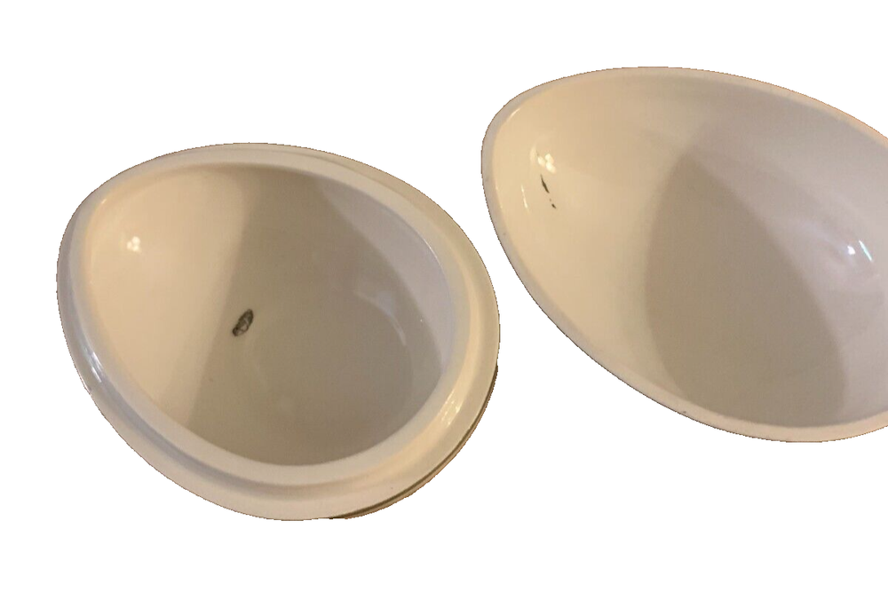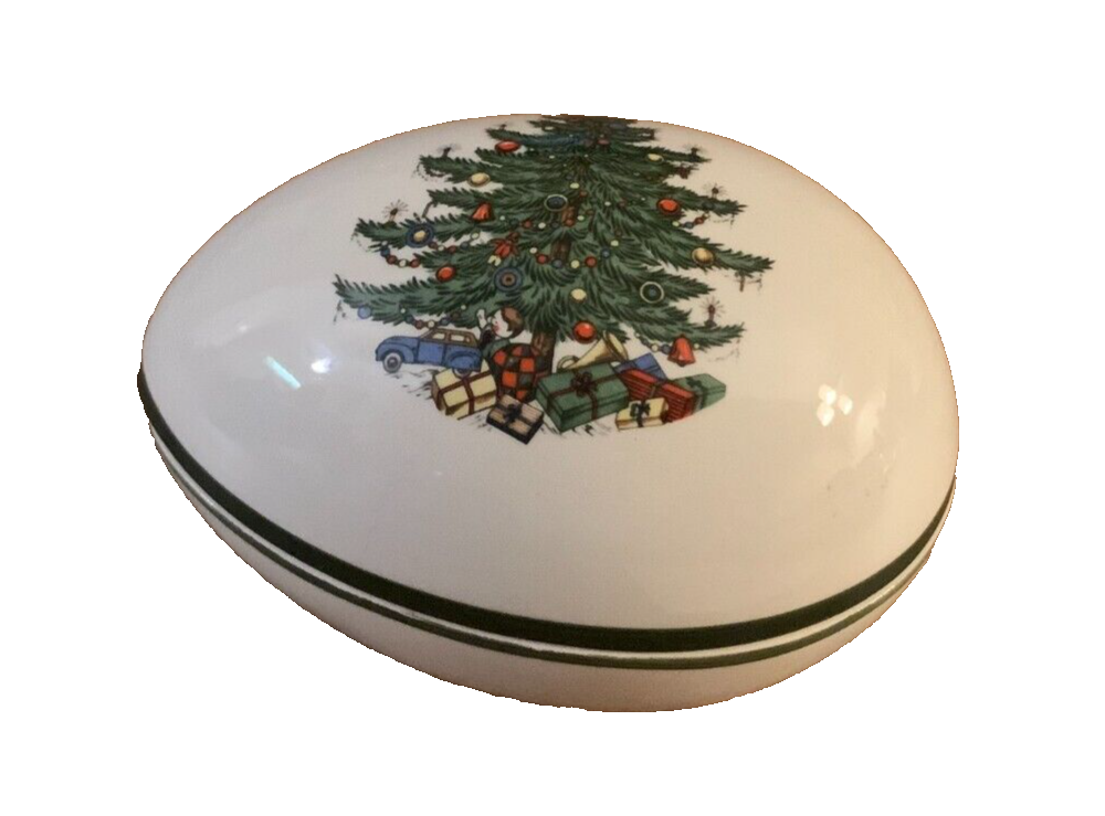 Covered Egg Trinket Box Christmas Tree Cuthbertson England 5'' x 3 1/2'' x 3'' tall. We have several items in this pattern for sale listed in separate auctions. We will combine the cost of shipping on multiple purchases. Item#: 18746 Pattern Code: CUTCHTGN Description: Thin Green Band, Tree, Cream Background Pattern: Christmas Tree (Narrow Green Band) by Cuthbertson Status: Discontinued. Actual: 1985 - 2001 Shelf 29 We own Lynn's Consignments Fun Home Furnishings in Ventura CA. 1975 E. Main Street Ventura, CA 93001. 5,000 square feet of carefully curated vignettes with merch from over 1,000 consignors. Everyone Wins When They Shop at Lynn's. Tues - Sat 11 to 5 and Sun 11-3 We also just opened a Clothing Consignment store in back at 1971 E. Main Street. Lynn's Fun Fashions! Come and see us :)