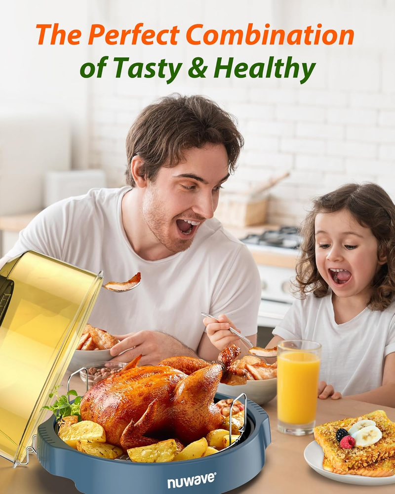 Oven Pro plus Air Fryer, Infra-Red Countertop, 2025 Advanced Convection, No Defrosting or Preheating, Cook Fresh or Frozen, Durable Power Dome, 100 Presets & 50 Memory, PFAS Free, Cozy Blue COOK FROM FROZEN WITHOUT DEFROSTING OR PREHEATING – Pro Plus 2 combines conduction, convection & infra-red to cook foods, fresh or frozen, up to 50% faster than a conventional oven and uses up to 85% less energy. PFAS FREE HEALTHY COOKING – The triple combo cooking power of the Pro Plus 2 cooks your food from both inside and outside simultaneously. This unique way of cooking releases more fat drippings, ensuring a healthier and flavorful meal every time. The new and improved Pro Plus 2 is also PFAS free for added peace of mind. TENDER & FLAVORFUL – The Pro Plus 2 cooks your meats, poultry, salmon, and vegetables to perfection bringing out the natural flavors while removing excess fat drippings. The food is crispy on the outside and tender inside, full of juices and flavor. LINEAR THERMAL TECHNOLOGY – Linear T Technology executes the set temperature accurately throughout the entire cooking process by continuously monitoring temperature fluctuations and making constant adjustments every second to ensure perfect results. MAKE ADJUSTMENTS ON THE FLY – Want hotter temperature or need to cook it longer? No problem. Simply adjust on the fly any time. Control time and temperature at any point in the cooking process. Pro Plus 2’s intuitive controls are easy to operate. FREEZER TO THE TABLE – You will never have to defrost or pre-plan another meal again. Save time and effort. Experience the ultimate convenience of going straight from freezer to the table. It is a must have appliance for busy households on the go! POWERFUL CONVECTION FAN – Pro Plus 2 is also a conduction, convection, and infra-red air fryer oven with a robust and powerful 4.5-inch efficient fan. Its top mounted position promotes unrivaled cyclonic 360-degree surround convection heat circulation. SHATTERPROOF POWER DOME – Durable and shatterproof, the Power Dome is designed to be impact, heat, and crack resistant to withstand the sizzling cooking temperatures of the Pro Plus 2. 100 PROGRAMMED MENU PRESETS – Pro Plus 2 is programmed with 100 pre-programmed menu presets allowing you to cook all your favorites - even from frozen without defrosting. You can grill, roast, broil, sear, bake, dehydrate, and air fry - all in one appliance. WHAT’S INCLUDED – Nuwave Pro Plus 2 Grill Oven comes with Power Head, Power Dome, 1”/3” Reversible Cooking Rack, Base & Liner Pan, Dome Holder, Quick & Easy Cooking Guide, and Owner’s Manual. Product Description Item model number 20663 Has Nonstick Coating Yes Manufacture Year 2020 Capacity 10 Pounds Color Cozy Blue Control Method Touch Wattage 1500 watts Material PFAS Free Country of Origin China Is Dishwasher Safe No Item Weight 11.7 pounds Model Name Pro Plus 2 Cozy Blue (PFAS Free) Recommended Uses For Product Bake, Air Fry, Dehydrate, Roast, Reheat Output Wattage 1500 Watts Special Feature 360 Surround Cooking Product Dimensions 14.5"D x 15.5"W x 12.88"H Shipping Fast shipping is very important for us. Our standard US shipping service is FREE. Your order will be shipped within 2-3 business days upon full payment received. Your order will be delivered within 2-3 business days after the handling time. We only ship to the confirmed PayPal address. We reserve the right to cancel any order for any reason at any time. We are not responsible for undeliverable addresses. Returns and payment We offer a 30 days return policy from checkout winning date. We allow only PayPal as payment method FeedBack Your feedback very important to us, after you get your package and you are satisfied with our service please leave us positive feedback If you have any problem with your order / any questions please before leave any type of feedback For any questions, using eBay contact system Please visit our eBay store to check out other items for sale! Thank you for shopping at our store.