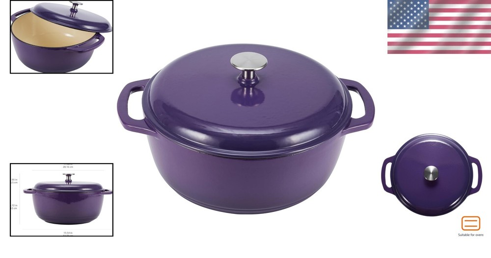 Oven Safe Round Cast Iron Dutch Oven, 6-Qt - Elegant Purple with Dual Handles ‹ › ‹ › ‹ › ‹ › ‹ › ‹ › ‹ › ‹ › Oven Safe Round Cast Iron Dutch Oven - 6-Qt - Elegant Purple with Dual Handles Key Features: Oven Safe Design: Ery durable, withstands temperatures up to 500°F, perfect for a variety of cooking methods. Excellent Heat Retention: Heavy-duty cast iron construction distributes heat evenly for optimal roasting, baking, sautéing, and cooking. Lasting Durability: Smooth enamel finish adds a layer of strength and aesthetic charm, ensuring long-lasting performance. Medium Size: The 6-quart capacity is perfect for serving 4-6 people, ideal for small casserole dishes, flavorful stews, or succulent roasts. Easy to Clean: Hand wash with warm, soapy water to maintain quality, avoiding citrus-based cleaners and metal utensils for pristine upkeep. Benefits: Versatile cooking capabilities for a variety of dishes. Beautiful purple color adds elegance to your kitchen and dining table. Designed for durability, ensuring years of reliable use. Effortless cleaning process maintains the beauty of your Dutch oven. Why Choose Our Cast Iron Dutch Oven? Elevate your cooking experience with our Oven Safe Round Cast Iron Dutch Oven, a stunning piece that marries function and elegance. Its striking purple hue is not just a feast for the eyes, but also a promise of enduring quality and performance. Whether you're roasting a tender piece of meat, baking a hearty casserole, or simmering a delightful stew, this medium-sized, 6-quart Dutch oven is your ideal companion to create culinary masterpieces for family and friends. Don't settle for less; indulge in the luxury and reliability of our enameled cast iron Dutch oven—order yours today and transform your kitchen experience! Shipping Free & Fast Shipping - We offer free shipping to most of the USA with a normal delivery time of 3-7 days. However, due to the current situation, additional delivery time (up to 3 weeks) may be required for some items. Alternative Carriers - We may use alternative carriers (e.g. USPS, FedEx, UPS, etc.) to ensure your package arrives safely and on time. Due to the use of multiple carriers, we are unable to provide a tracking number automatically. Handling Time - Orders are processed and shipped within 1-2 business days of receiving cleared payment. Shipping Restrictions - Shipping to Alaska, Hawaii, Puerto Rico, Guam, and other US territories may incur shipping charges or delivery restrictions. Please contact us before ordering, or your order can be refunded/cancelled. State Restrictions - There may be restrictions based on your state of purchase. For example, certain items may not be shipped to California due to state regulations. Contact for Tracking Updates - If you require tracking updates or have any concerns about the delivery of your order, please feel free to contact us, and we will be happy to assist you. Return 30-Day Hassle-Free Returns - We want you to be completely satisfied with your purchase. If you are not, you can return the item within 30 days of receiving it for a full refund or exchange. Easy Return Process - To start a return, simply contact us and we will provide you with a prepaid return shipping label and detailed instructions. Restocking Fee - There are no restocking fees for returns. However, the buyer is responsible for return shipping costs if the return is not due to a seller's error. Refund Processing Time - Refunds will be processed within 5 business days of receiving the returned item in its original condition. Payment We accept all major credit cards, PayPal, and Apple Pay for your convenience. Your payment information is secure and encrypted to ensure a safe and seamless transaction. Please complete your payment within 3 days of purchase to avoid any delays in shipping. Feedback Your feedback is extremely important to us. We strive to provide the best products and customer service possible. If you are satisfied with your purchase, please take a moment to leave us a positive review. If you have any concerns or issues with your order, please contact us before leaving negative feedback. We are committed to resolving any problems and ensuring your satisfaction. Contact Us If you have any questions or concerns, please feel free to reach out to our customer support team. You can contact us through the eBay messaging system. We are available Monday to Friday, 9:00 am to 5:00 pm EST, and we will do our best to respond to your inquiry within 24 hours. Buy it now and enjoy a pleasant shopping experience! UPC: Not Set Item Diameter: 13.5 inches Capacity: 6 quarts Item Width: Not Set Item Length: Not Set Model: Not Set Item Weight: 13.05 pounds Heat Resistance: 500 degrees Fahrenheit Item Depth: 4.7 inches Item Height: Not Set Unit Quantity: 1 Stove Type Compatibility: Electric,Gas,Induction Set Includes: Lid Material: Cast Iron Features: Easy to Clean,Oven-Safe Type of Oven: Electric,Gas,Induction Brand: Unbranded Type: Dutch Oven Color: Purple Surface Coating: Enameled Shape: Round Country/Region of Manufacture: Not Set Time Period Manufactured: Not Set Number of Items in Set: One-Piece Unit Type: lb Vintage: Not Set Antique: Not Set Original/Licensed Reproduction: Not Set
