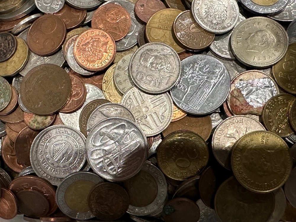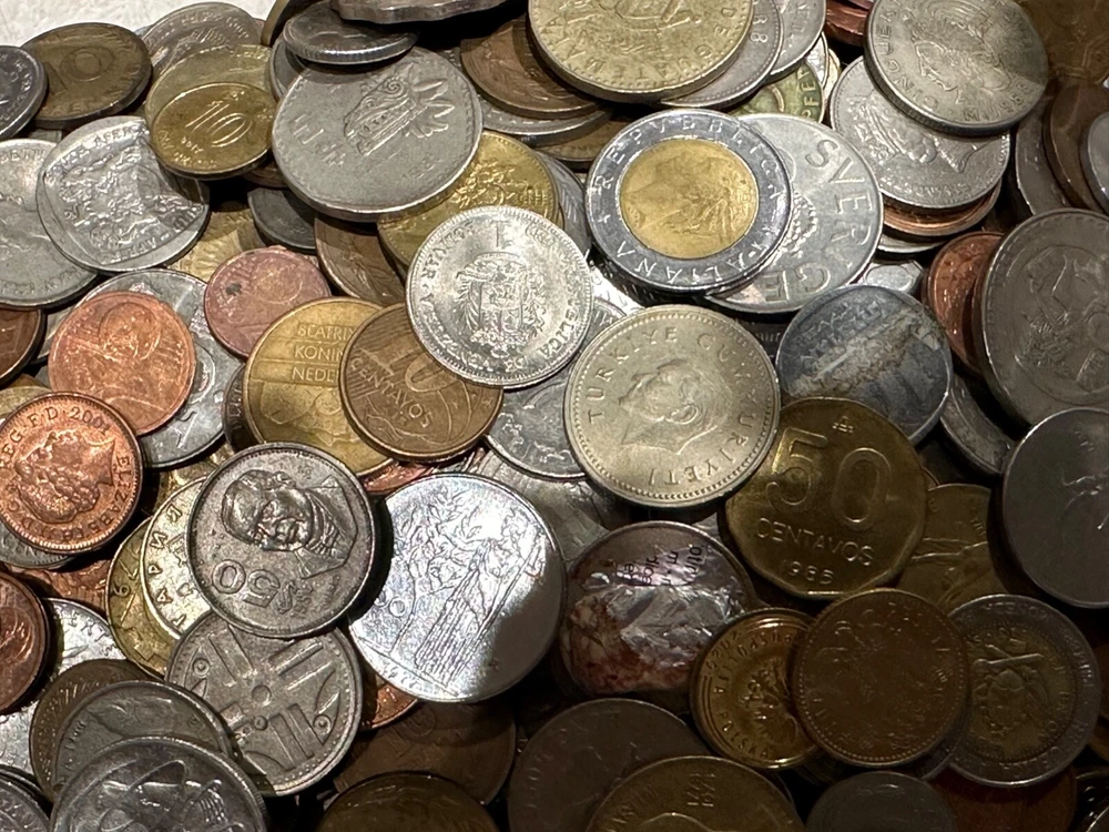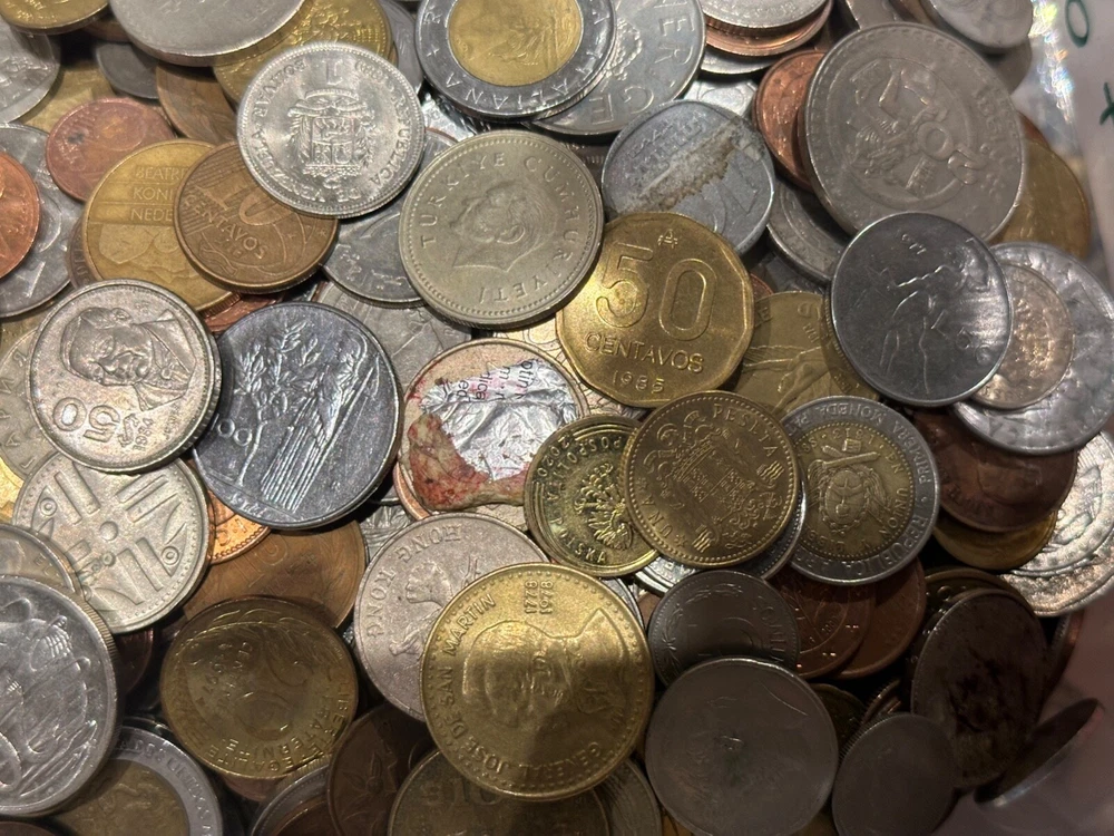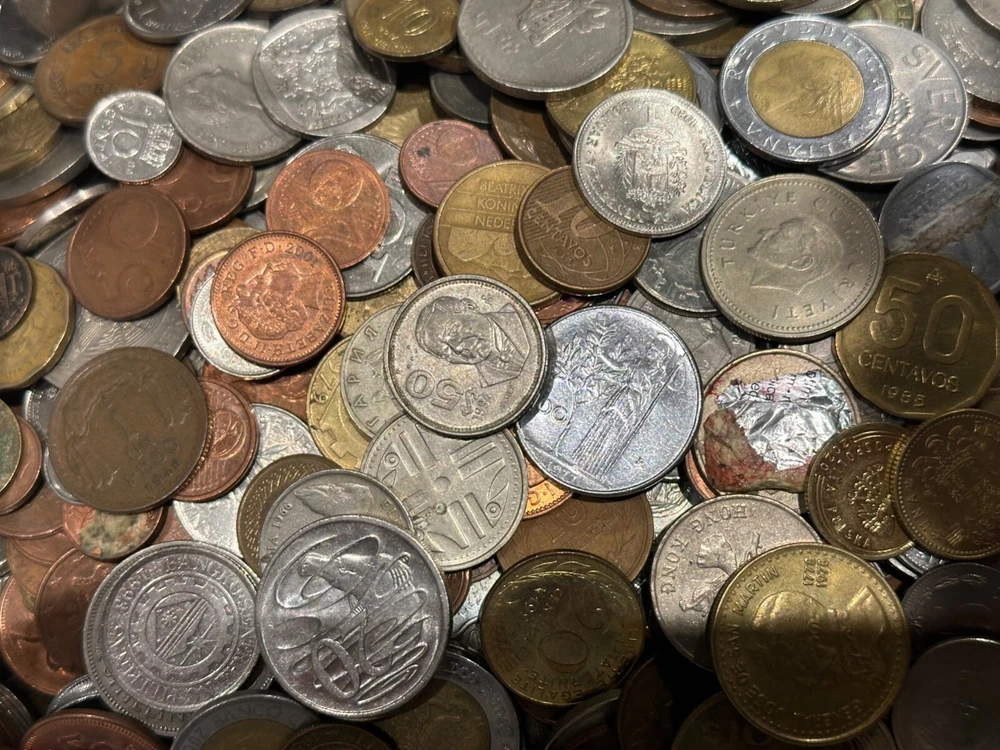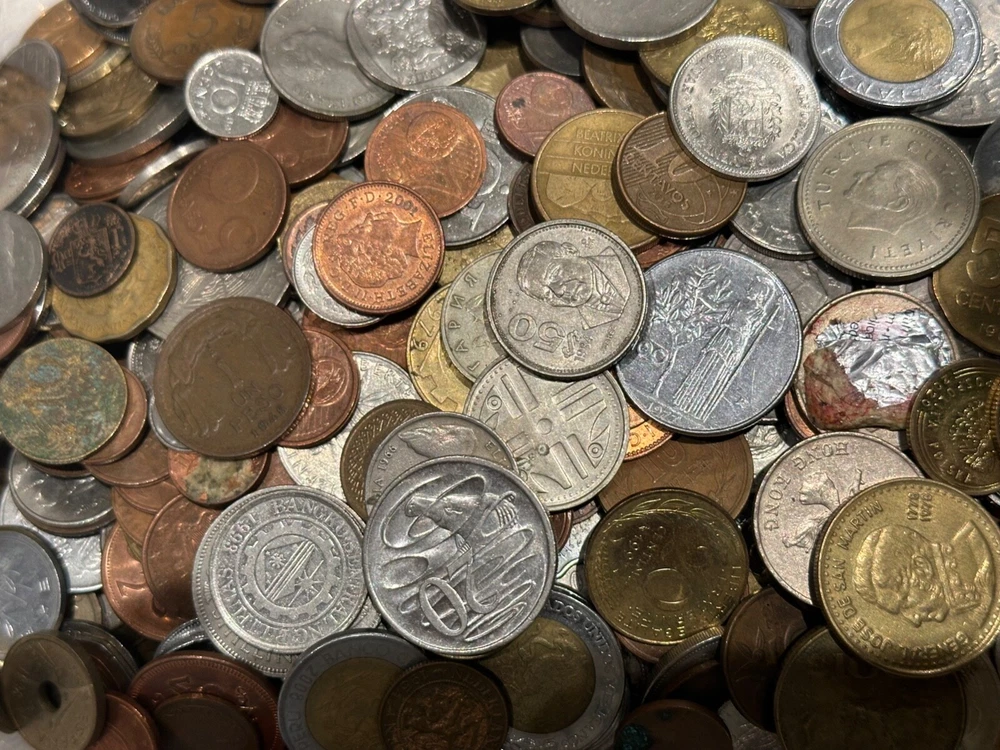 This 1 PLUS POUNDS lot of world coins contains a diverse collection of international coins from a variety of countries and regions. The coins range in denomination, composition, and year, offering a unique opportunity for collectors to expand their collection. The coins have been SEARCHED to reduce the number of low grade and Canadian coins, BUT NOT graded or certified, and their circulated or uncirculated status may vary. This lot includes coins from unknown countries and regions of manufacture, adding an extra layer of mystery to the collection. With almost every type of composition available, EXCEPT THERE IS NO SILVER OR GOLD--collectors will have the chance to own a piece of history from around the world. Whether you are a seasoned collector or just starting out, this bulk lot of world coins is a START for any serious coin enthusiast.