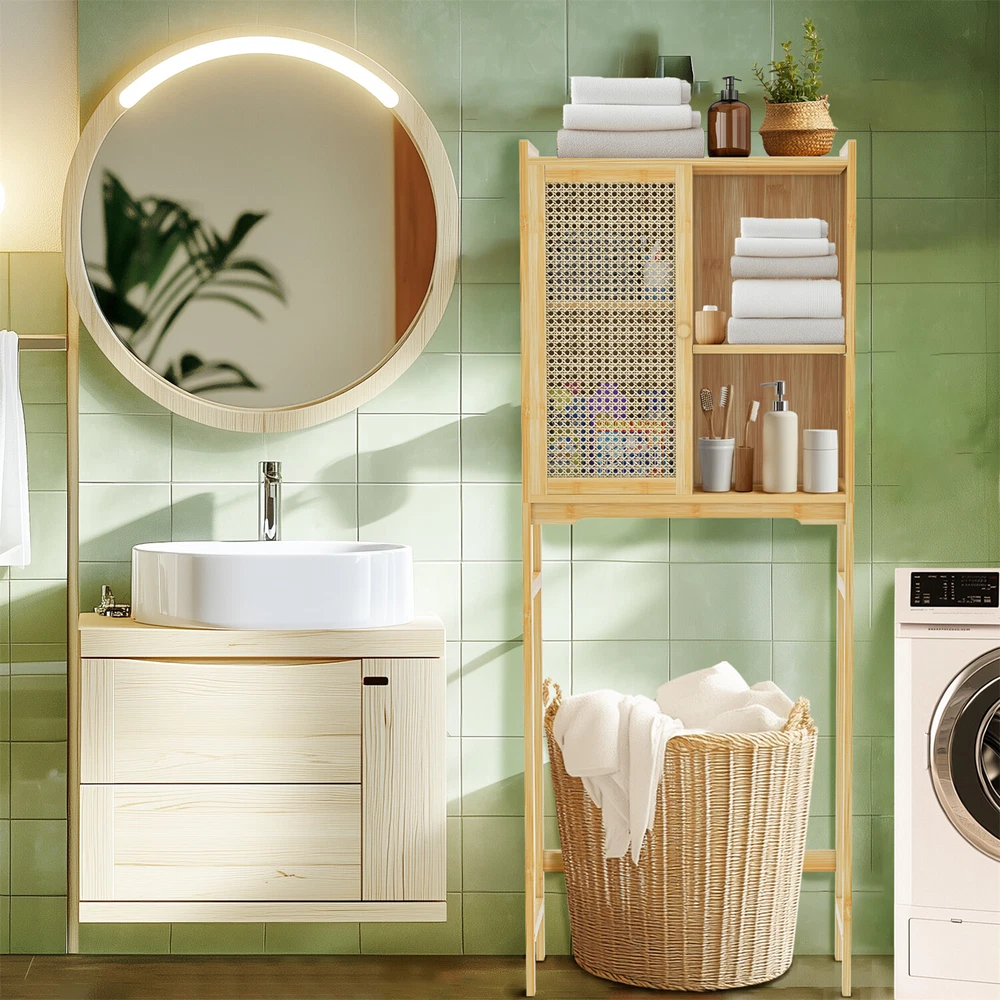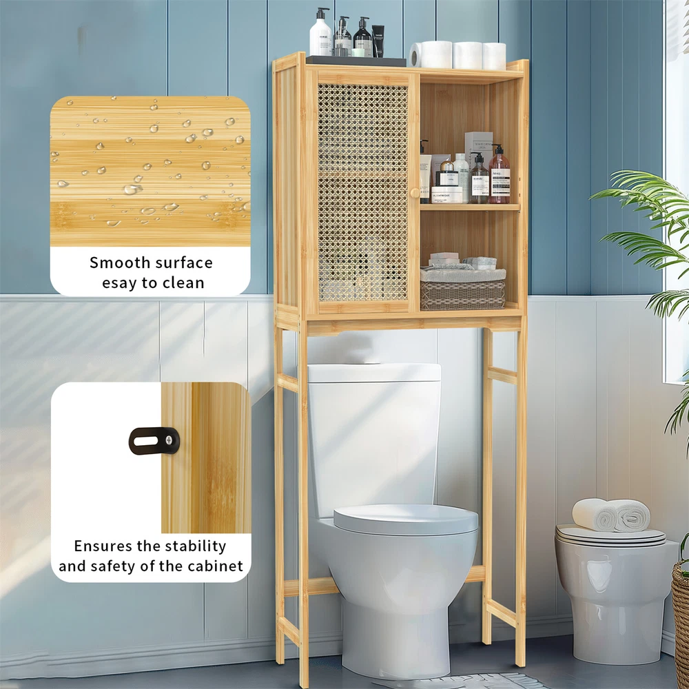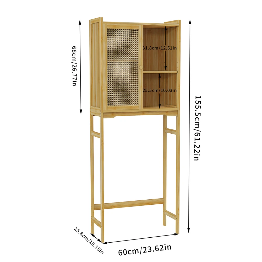 Over The Toilet Rack Bamboo Storage Cabinet Bathroom Shelf Organizer Solid Wood Over The Toilet Rack Bamboo Storage Cabinet Bathroom Shelf Organizer Solid Wood US SELLER, FAST SHIPPING! Features: The natural wood finish seamlessly blends with any styles, adds a touch of warmth. Two-tier shelves for organizing toiletries and other necessities, maximizes storage. With two shelves for organizing toilet paper, towels, toiletries, and cleaning supplies. Having this storage over the toilet allows for easy access to frequently used items. Not only provides practical storage but also creates a light and airy look in your home. With a woven door design, strong magnet lock to hold door shut, preventing dust. Crafted of renewable bamboo, high tensile strength, extremely robust, built to last. The anti-tip design ensures stability by holding the rack steady against the walls. Measuring at 23.62’’ L, 10.15’’ W, 61.22’’ H, easily fits over most standard toilet sizes. Its sleek natural wood finish has a warm, organic look, enhance the overall beauty. Over-the-toilet storage units, making it an ideal option for renters or homeowners. The package includes hardware and clear instructions, easily and quickly set it up. Specifications: Type: Toilet Storage Cabinet Style: Modern/ Contemporary Model: Toilet Storage Shape: Rectangle Mounting: Free Standing Room: Bathroom Toilet, Washing Machine Feature: With Shelves, Multifunctional Materials: Bamboo + ABS Plastic + MDF Board Color: Natural Wood Net Weight: 12.5kg/ 27.56 lbs Product Dimension: L * W * H total 60x25.8x155.5cm/ 23.62x10.15x61.22 inch Package Includes: 1 x Over-The-Toilet Storage 1 x Instructions Payment Delivery details Terms of sales About us Contact us Payment 1.We accept payment by credit card, paypal, payoneer. 2.Upon on payment, please confirm your shipping address. Delivery details 1. All of our products are brand new. 2. All Mirror have passed drop test over 1.2m and quality inspection, ensures the mirror was shipped in good condition before shipment. Terms of sales 1.We are located in NJ, CA ,all the items will be shipped via USPS, UPS Ground, Fedex Ground with tracking number provided. 2. We cannot ship to Alaska, Hawaii & Puerto Rico Addresses. About us About Wisfor At Wisfor,we provide high quality LED bathroom mirrors,focus on the development and innovation of mirrorsand our company has over 10 years backed with professional service experience, and exports products to more than 130 countries around the world. There are severial series of mirrors, Bathroom Mirror with Light, RGB Frontlit &Backlit LED Mirror, Metal Frame Mirror,Decorative Wall Mirror,ect. And many shapes, rectangle, round, oval, and so on.We always focus on the development and innovation of high-quality LED bathroom vanity mirror, to meet your demand and to elevate personality and design tastes. Contact us 1. If you are satisfied with the transaction could you pls leave us a positive feedback 5-star that we will be appreciated. 2. Normally your email would get replied within 24 hours (Business Hours) and your issue will be followed up carefully till we 've reached an agreement. 3. If you have any questions or suggestions before opening a case or dispute ,or leaving any neutral or negative feedback, please contact us first,we will try our best to resolve your problem. Brand UNHO Type Toilet Storage Cabinet Material Bamboo + ABS Plastic + MDF Board Number of Shelves 4 Mounting Free Standing Item Length 23.62 inch Item Width 10.15 inch Item Height 61.22 inch Item Weight 27.56 lbs Door Style Slab Assembly Required Yes Item Depth 25.8 cm Department Adults Model Toilet Storage MPN mkx0CM9S2 Room Bathroom Number of Doors 1 Features Adjustable Shelves Color Natural Wood