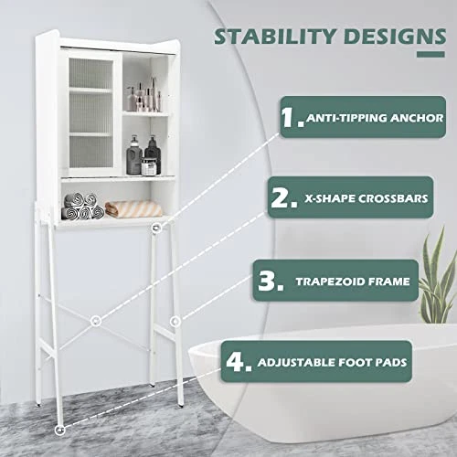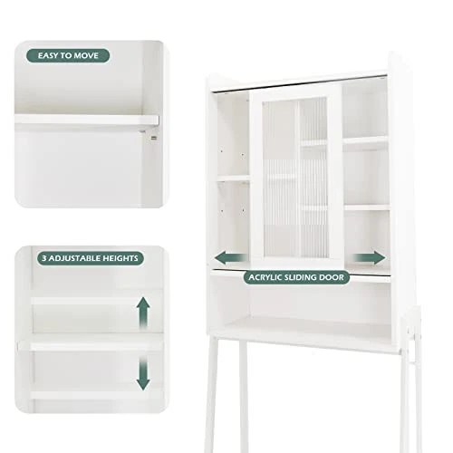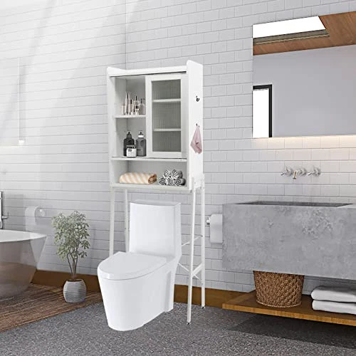 Return Policy Fast Delivery Trusted seller Over Toilet Storage Cabinet Organizer for Bathroom, Over Toilet Shelf, Freestanding Space Saver with Adjustable Shelves, Acrylic Sliding Door, Wide Open Shelf, 2 Hooks, Classic White Product Description Warm Tips: Check You Right Toilet Size & To Purchase- Measures 25" L, 10" W, and 67" H. It fits over most standard toilets. Made of standard particle board with melamine coating, which makes it sturdy, waterproof, and easy to clean. Includes detailed assembly directions to make installation in a breeze. STURDY STRUCTURE- Crafted from particle board and metal frame, with trapezoid frame and X-shaped support bar. This bathroom over toilet organizer is steady, robust and maintains an open feel in your space. And the adjustable leg risers are designed for easy leveling on uneven floors and protect floors from scratches. VINTAGE STYLE - A simple toilet rack brings a bathroom to life. The retro industrial style matches the décor perfectly and adds a charming element to your surroundings. The craftsmanship of smooth coating complements the pure tone of the shelf and cabinet, creating a transitional look. ADJUSTABLE CABINET SHELF - Behind the acrylic sliding door is a hidden storage area that includes 3-position adjustable interior shelves. It can move up, down, or out for a storage space customized to your needs. The movable shelf can be adjusted separately: 6.5", 6.8", and 7.2". It creates more functional bathroom storage space. With the free bonus of 2 multi-purpose hooks to hold everything from bath towels, candles, aroma, and plants, you can have all the storage you need without sacrificing your space. EXPAND STORAGE SPACE - The over toilet bathroom organizer with easily accessed storage solutions: features an acrylic panel sliding door cabinet w you can keep toilet paper and spare toiletries out of sight. An open shelf under the cabinet gives you an easy spot to keep your essentials organized and close by. The freestanding vertical orientation design saves precious floor space, it’s a good option for a tiny bathroom, and helps expanding your bathroom to 200% and more. Shipping Returns Payment Shipping Shipping is FREE to all addresses other than APO/PO boxes in the lower 48 states. All our stock ships from US-based warehouses. Shipped via USPS or UPS (depending on location and package weight) Unless stated otherwise, all orders will ship within 24-72 hours of your payment being processed. Check our feedback to see the great reviews of FAST shipping we offer. Returns Seller does not accept returns Payment We currently accept payment via eBay managed payments only. Once payment is cleared, we will dispatch your shipment within 1-3 business days. Please refer to the "Shipping" tab for more information regarding shipping speed to your destination.