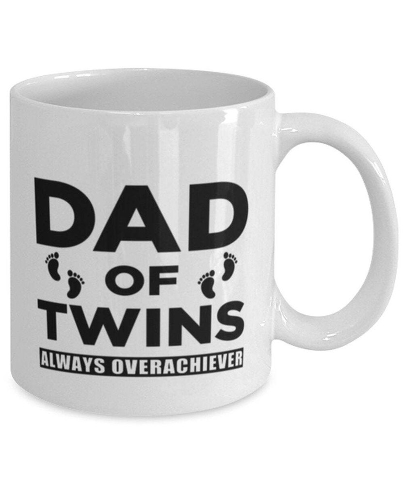 Funny Dad Of Twins Mug Always Overachiever Father's Day Gift For Dad Gift Mug Product Details.. This high quality 11oz. ceramic white mug has a premium hard coat that provides crisp and vibrant color reproduction sure to last for years. Perfect for all hot & cold beverages. The highest quality printing possible is used. It will never fade no matter how many times you wash it. Material: 100% Ceramic. Print both sides. Dishwasher and Microwave Safe. High Gloss + Premium White Finish. Printed in the U.S.A. Personalized & Custom. We support personalized and custom mug to add custom, when placing an order, you can add notes to the "order note" in shipping address section. Also you can contact us directly via message. Shipping Info. Ready to ship in 1 to 2 business days, All products are made-to-order and proudly printed in the United States. Shipped by USPS and DHL, You will receive your order in 5-7 days. Replace & Refund. All products are defective during shipping broken, chipped will be replaced free of charge. You are not satisfied with the product, we will refund 100% money to you. If any other issues arise, please do not hesitate to message, we would be more than happy to assist you.