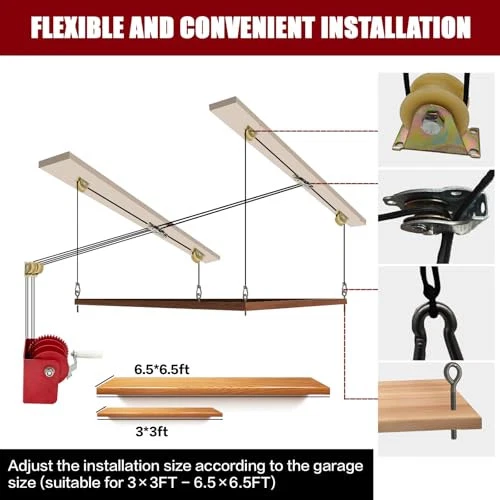 Return Policy Fast Delivery Trusted seller Overhead Garage Storage Rack - Heavy-duty Lifting Garage Ceiling Storage Rack,Adjustable Organization System, 300lbs Weight, Easy Installation & Operation Product Description HIGH QUALITY & SAFE - Designed for safety with heavy-duty steel premium hardware and reinforced braided nylon rope, this product is designed to safely hold up to 300 lbs. and is rigorously tested for safety and durability to ensure long-lasting performance Maximize safety during use. EASY TO USE - Easily operated by one person. Our garage storage lift is equipped with a hand crank to ensure that items are easily lifted up to a maximum height of 16 feet with minimal effort, making it easy to place items without the need for a ladder. EASY INSTALLATION - Our garage storage lift systems feature an integrated wire grill that greatly reduces installation steps, and you can customize the size of the pallets to fit your garage space. We also offer installation templates as well as paper and video instructions to help you install quickly. MULTIPURPOSE - Our garage pulley lift system features a secure fall arrest system and heavy-duty construction, Maximize Garage Space can also be used as a wrangler roof lift to protect your belongings and utilize the garage ceiling space to store seasonal and unused items. If you have any installation or product quality issues, feel free to contact us.our professional customer service team will be at your service 24/7. Shipping Returns Payment Shipping Shipping is FREE to all addresses other than APO/PO boxes in the lower 48 states. All our stock ships from US-based warehouses. Shipped via USPS or UPS (depending on location and package weight) Unless stated otherwise, all orders will ship within 24-72 hours of your payment being processed. Check our feedback to see the great reviews of FAST shipping we offer. Returns Seller does not accept returns Payment We currently accept payment via eBay managed payments only. Once payment is cleared, we will dispatch your shipment within 1-3 business days. Please refer to the "Shipping" tab for more information regarding shipping speed to your destination.