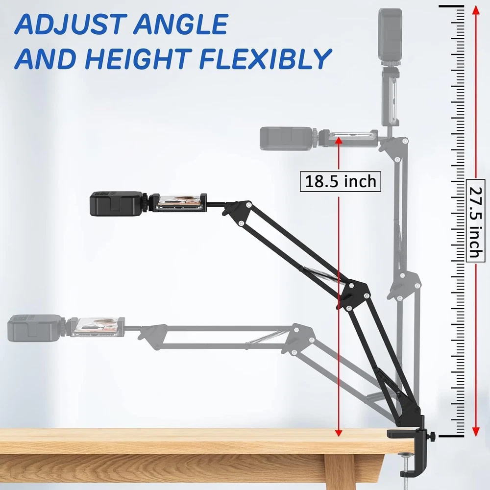Overhead Phone Mount, Articulating Arm Cell Phone Holder with LED Light, Flexibl