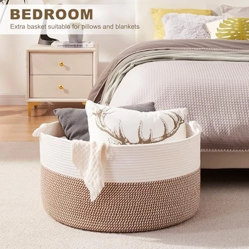 Return Policy Fast Delivery Trusted seller Large Blanket Storage Basket for Living Room, 22.8" x 22.8" x 13" Woven Cotton Rope Basket with Handles, Baby Toy Storage, Laundry Hamper for Clothes, Pillows, Towels-Yellow and White Product Description XXL Large Basket: Measuring 22.8"L x 22.8"W x13"H, Big and deep enough to store most home bulky items, such as pillows, blankets comforters, duvets, cushions, and dog toys, winter clothing, laundry clothes and more Soft Round Basket: The toy storage basket is made of natural cotton rope which is soft and durable, safe for your kids and pets. Craft Woven Basket with Neutral tones/colors for home decor and storage Multifunctional Use Storage Basket: The big rope basket perfect for bedroom, living room, child's room, bathroom and laundry room. Helps you organize bath towels, extra bedding, pillows and other things Woven Basket with Handles: This laundry basket features two woven knot handles. The sturdy handles make it easy to carry, perfect for organizing children's belongings. With ample space,little ones can easily reach in and grab their favorite items to play with in the nursery Note: The blanket basket is foled for shipping. It will turn back to its elegant shape quickly by filling it with towels or blankets, and ironing is a great idea as well. Also, you can fold it into a flat shape for easy storage when not in use Shipping Returns Payment Shipping Shipping is FREE to all addresses other than APO/PO boxes in the lower 48 states. All our stock ships from US-based warehouses. Shipped via USPS or UPS (depending on location and package weight) Unless stated otherwise, all orders will ship within 24-72 hours of your payment being processed. Check our feedback to see the great reviews of FAST shipping we offer. Returns Seller does not accept returns Payment We currently accept payment via eBay managed payments only. Once payment is cleared, we will dispatch your shipment within 1-3 business days. Please refer to the "Shipping" tab for more information regarding shipping speed to your destination.