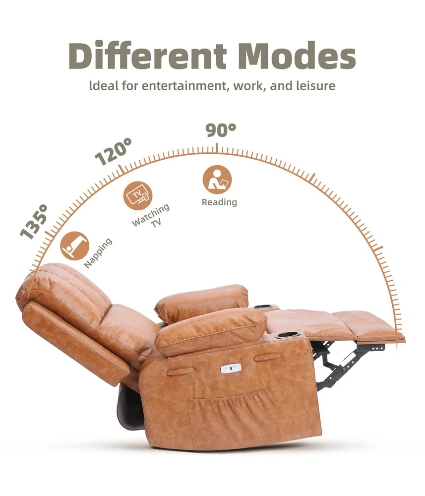 This oversized electric recliner is a game-changer for relaxation! The massage and heat features melt away stress, while the smooth 360° swivel and gentle rocking make it perfect for lounging, gaming, or napping. The extra-wide seat and plush cushioning provide cloud-like comfort, and the durable PU leather looks sleek. It reclines effortlessly with the touch of a button—ideal for unwinding after a long day. A fantastic blend of luxury and functionality!