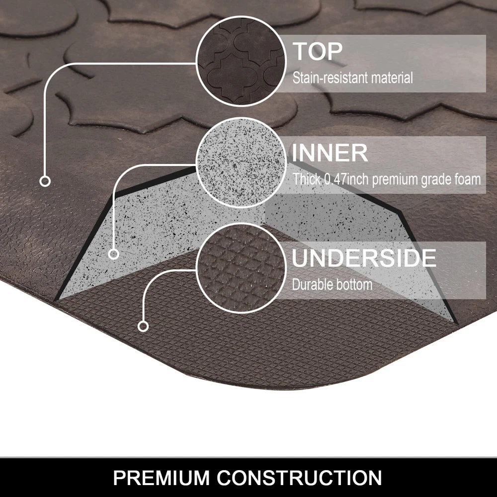 Thick Cushioned Antifatigue Floor Mat: anti-fatigue kitchen floor mat provides thick, cushioned support to help improve circulation and posture alleviates , to ensure that you are able to stand comfortably while working in the kitchen or at any work station. Perfect for hair stylists,cooks and anyone who stands for long periods of time; Comfort Standing Mat: The large anti fatigue laundry room rug runner measures 17.3x48inch. ergonomically engineered antifatigue kitchen rug runner is made of premium PVC and thick foam.The mat is constructed with premium strength material to ensure that it will keep shape with extended and heavy use. Non Slip Kitchen Mat Runner: cushioned anti-fatigue comfort mat is designed with a unique beveled edge. The water-resistant top area has an attractive texture and the underside is super non-slip bottom, helpful to prevent tripping & slipping. Easy Clean Office Standing Mat: This padded foam kitchen floor mat is waterproof ,oil/stain resistant, do not collect dirt or pet hair, easy to clean, can be vacuumed or wiped with a damp cloth or sponge.The waterproof kitchen mats and rugs ensures long-term durability and superior comfort. Versatile Anti Fatigue Comfort Mat: This anti fatigue floor mat provides a large activity area in laundry room, kitchen, office or any other high-traffic place, can be used for multiple surfaces(wood, ceramic, marble, etc). The neutral color any decor and it is a great gift for your family if you take good care of your and well-being.