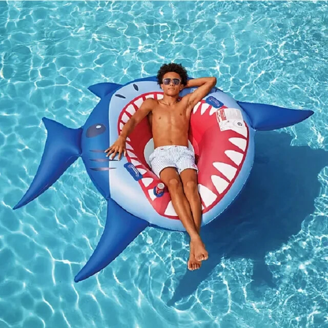 Members Mark Oversized Pool Float Open Mouth Shark Design 56in Cupholder Mesh Seat Handles. Brand New. The entire family – kids and adults – will have nonstop water fun in the backyard pool, at a lake, the beach, or out on a river with this oversized inflatable float. It’s an ideal inflatable pool float for spending time outdoors and relaxing in the sun. Sized for extra fun and easy to inflate, the durable materials ensure endless hours of enjoyment. Has a mesh seat for comfort and a weight capacity of 200lbs. Featuring heavy-duty handles and heavy-gauge PVC construction, Member's Mark Tube Float offers long-lasting use in the water. A versatile cupholder makes relaxing even more enjoyable. Measuring over 4.5-feet in diameter, this generously-sized inflatable float is great for both kids and adults. Our Tube pool float inflates quickly, and when it's time to dry off, a quick-release safety valve makes deflation speedy. Features: Inflated Size: 95in x 68in x 13.5 in Has a Versatile Cupholder Mesh Seating Side Handles Quick Release Valve Weight Capacity: 200lbs Repair Patch Included Shipping Policy: Free shipping to the 48 contiguous states only We ship out the day after payment or the same day if possible